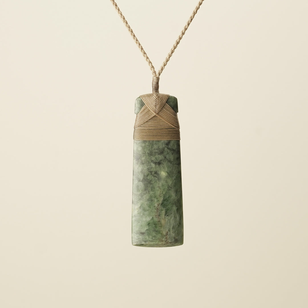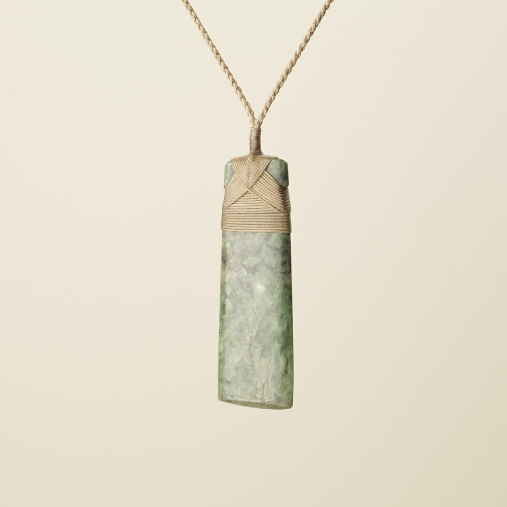 Toki Inanga Pounamu Extra Large Pendant, Tan Binding