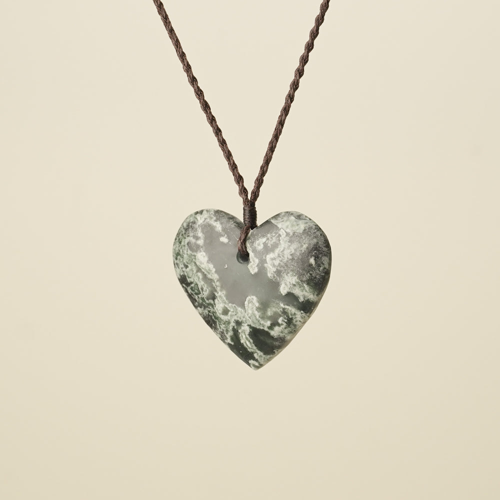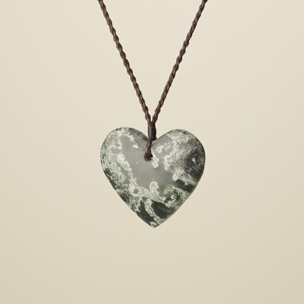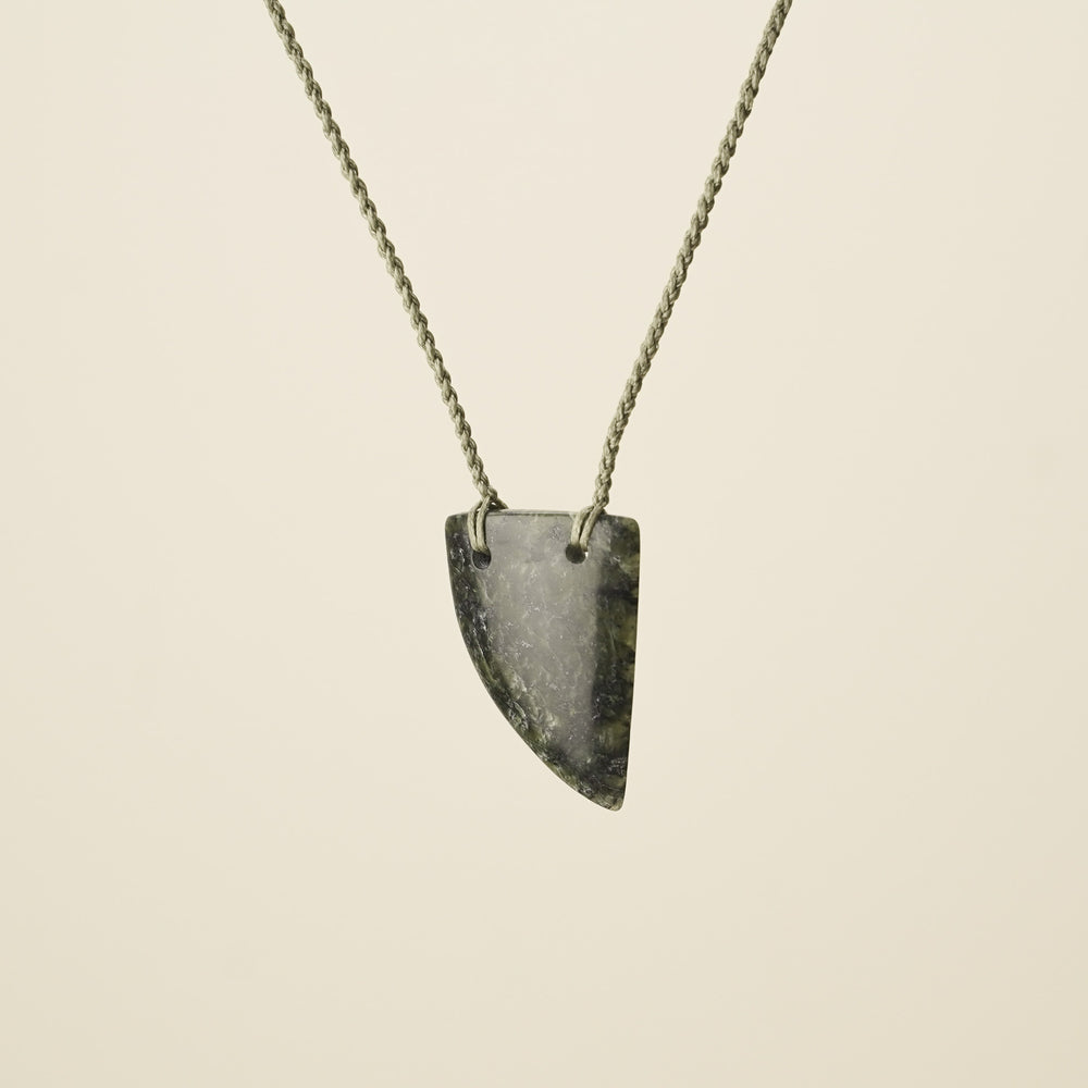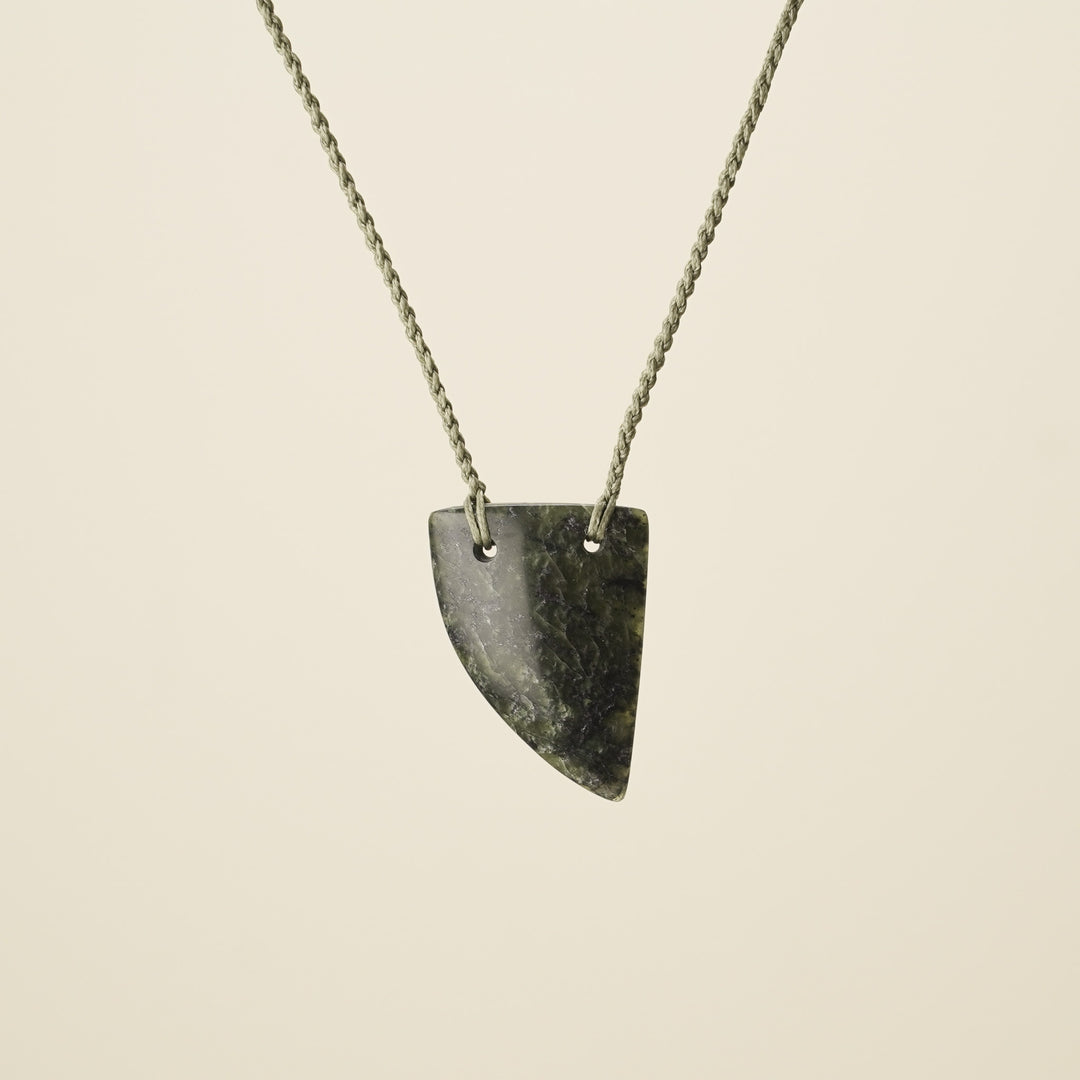 Niho Tooth Pounamu Marbled Kawakawa Medium Pendant, Khaki Binding