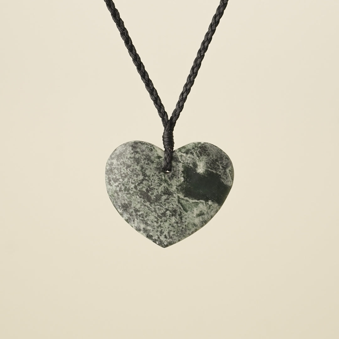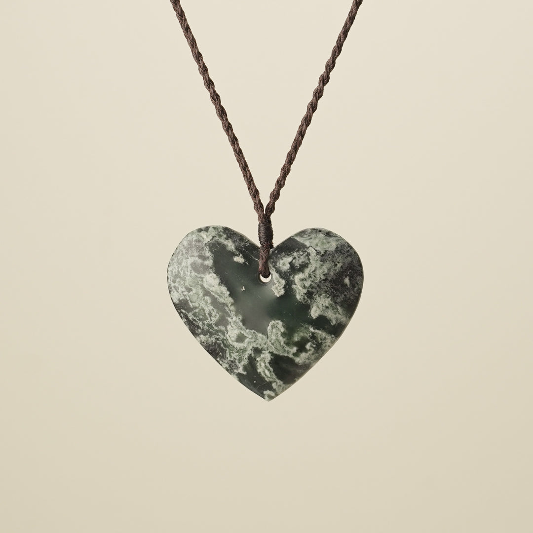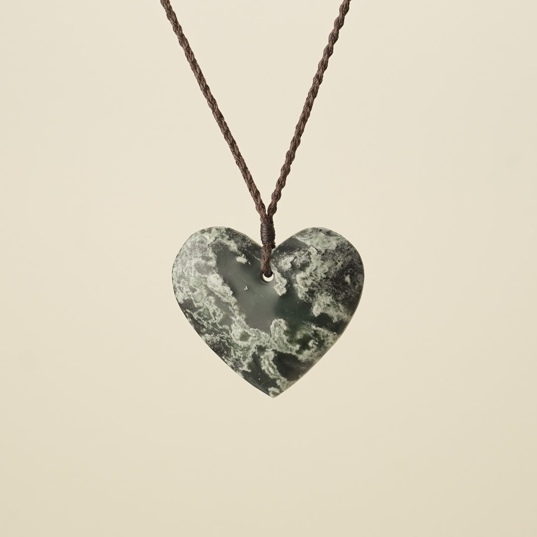 Niho Tooth Pounamu Marbled Kawakawa Medium Pendant, Khaki Binding