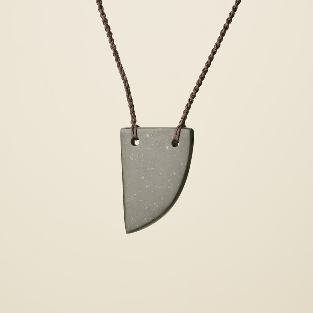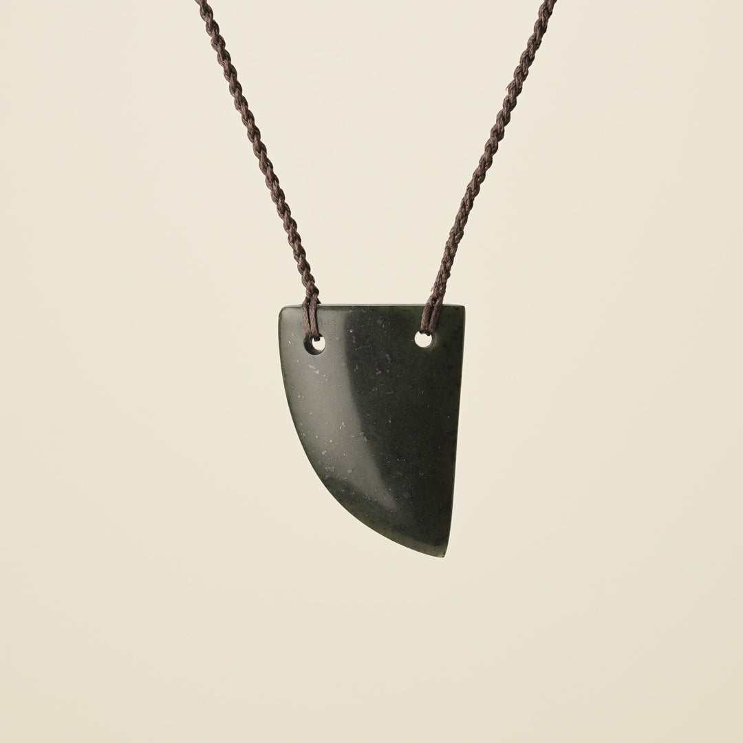 Niho Tooth Pounamu Medium Pendant, Brown Binding