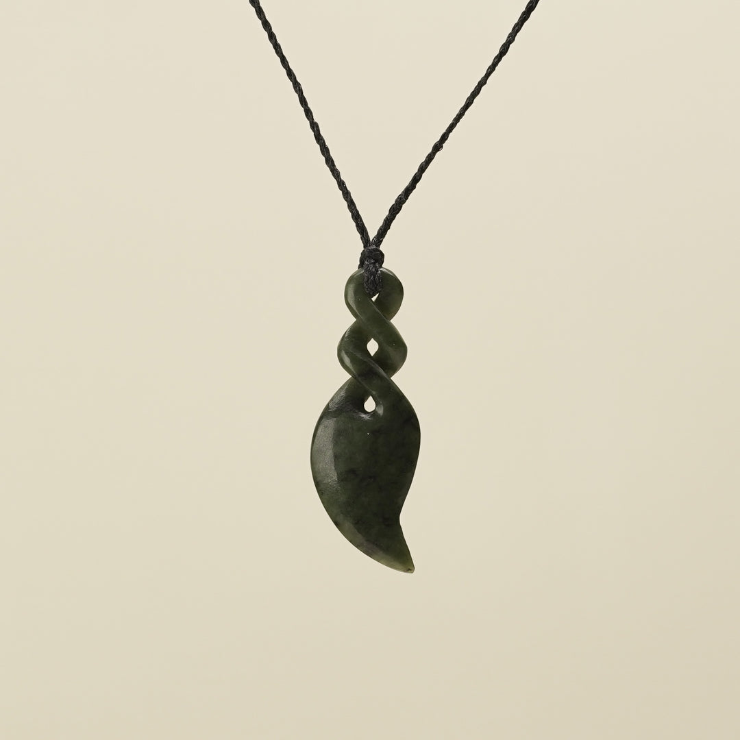 Double Pikorua Hapopo Pounamu Pendant, Black Binding