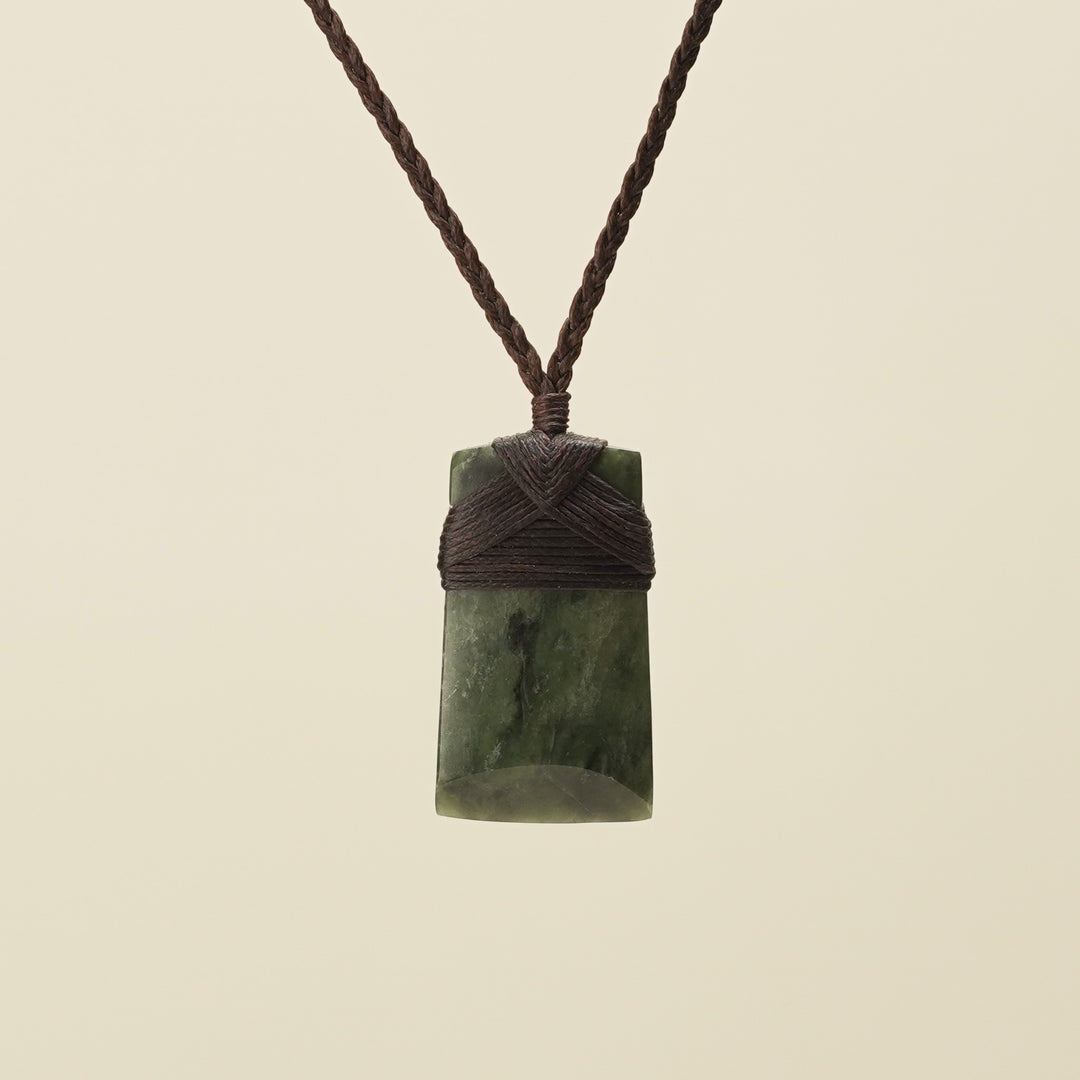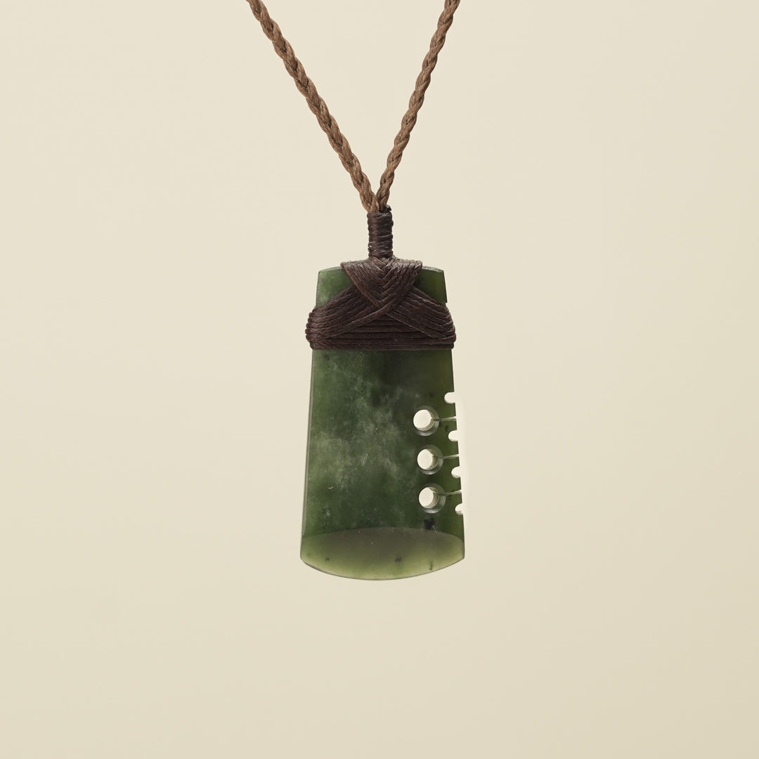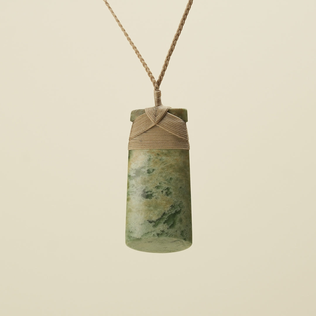 Toki Flower Putiputi Pounamu Large Pendant, Tan Binding