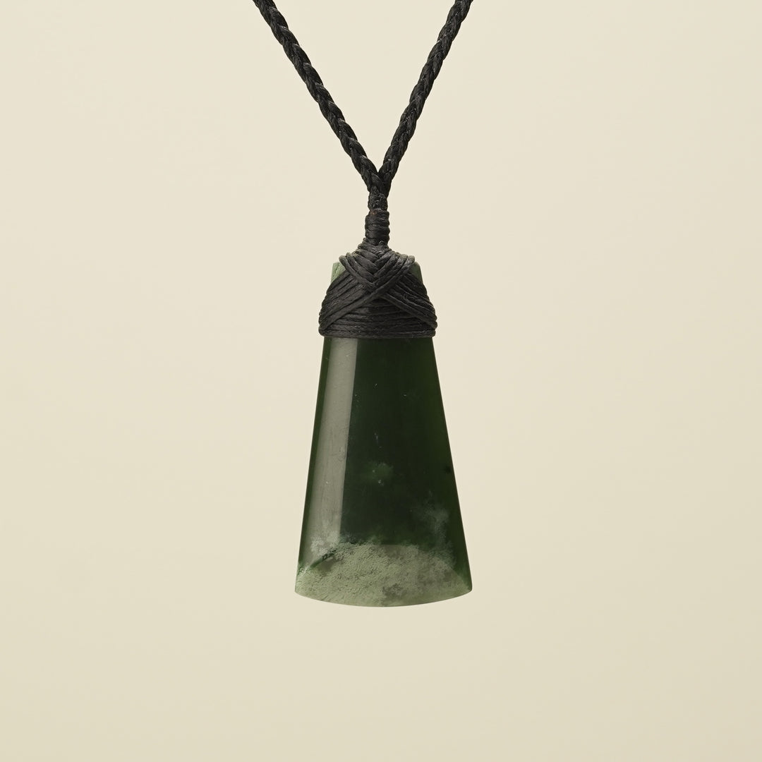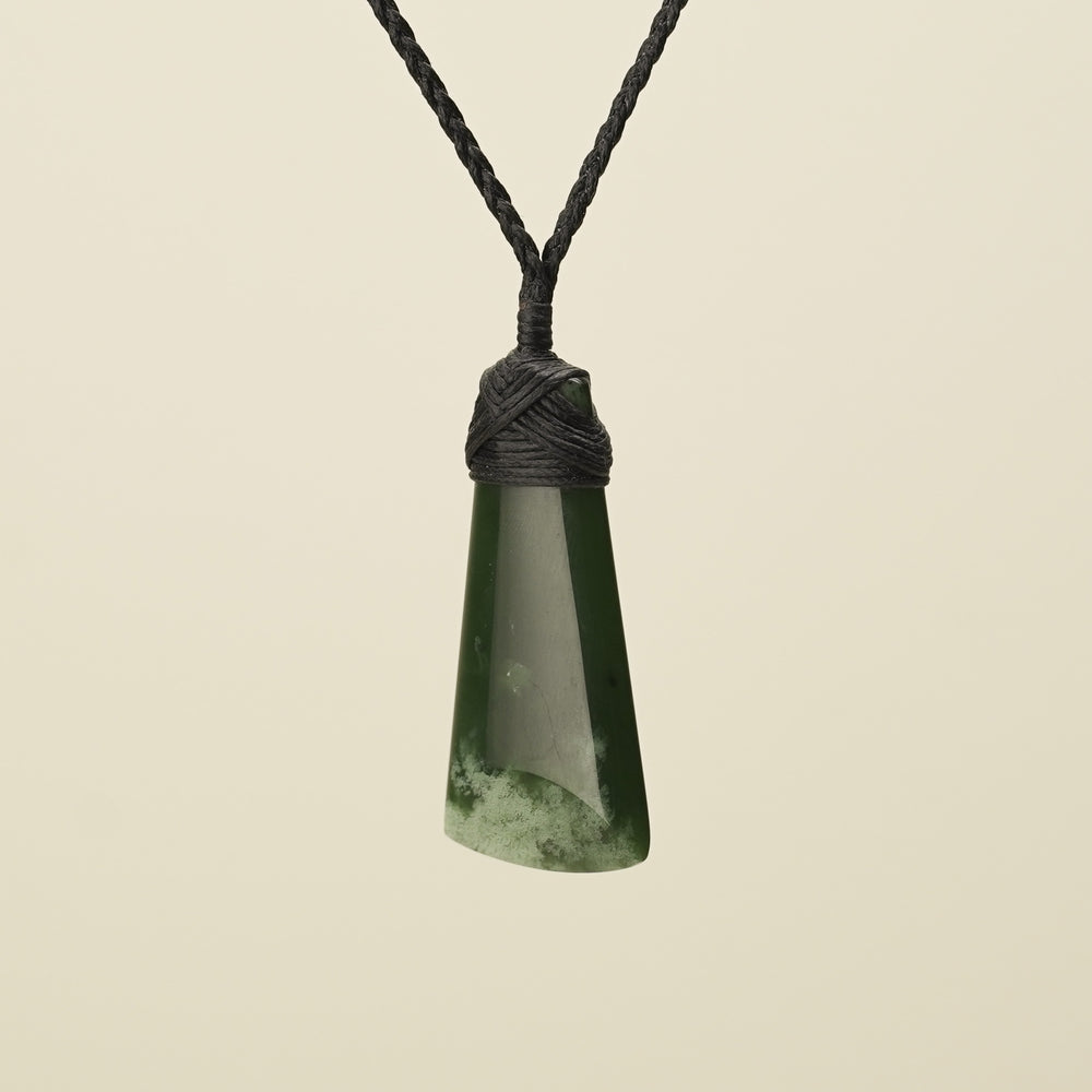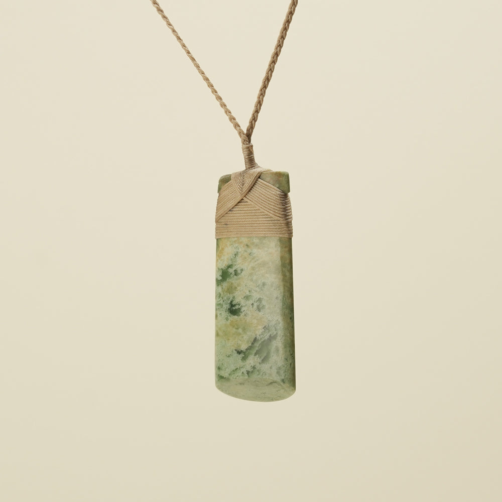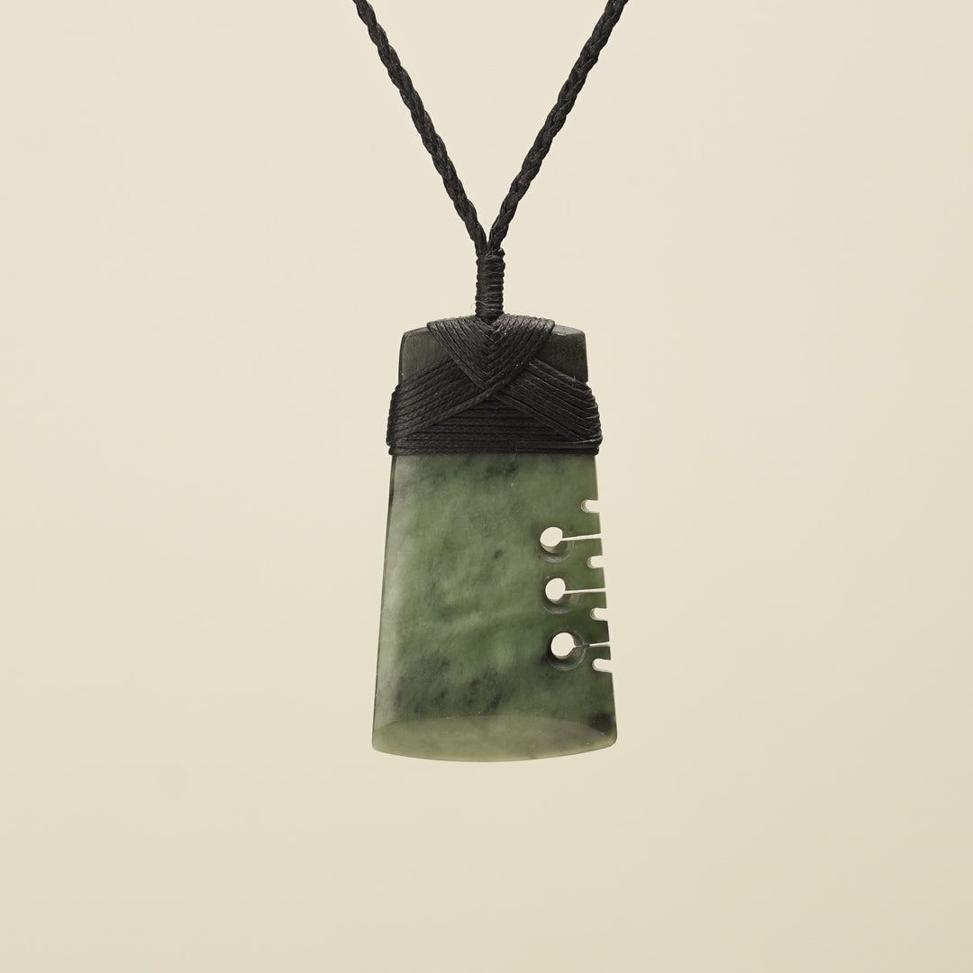 Toki Flower Putiputi Pounamu Large Pendant, Tan Binding