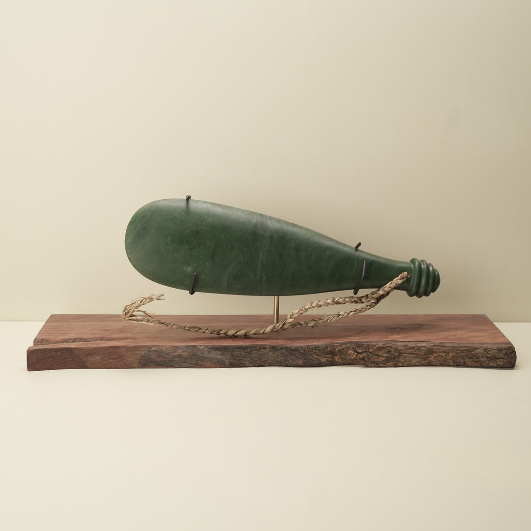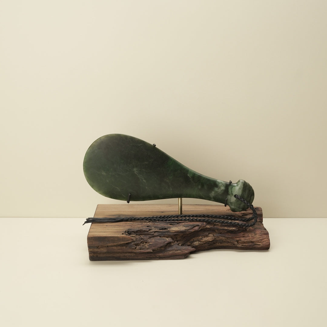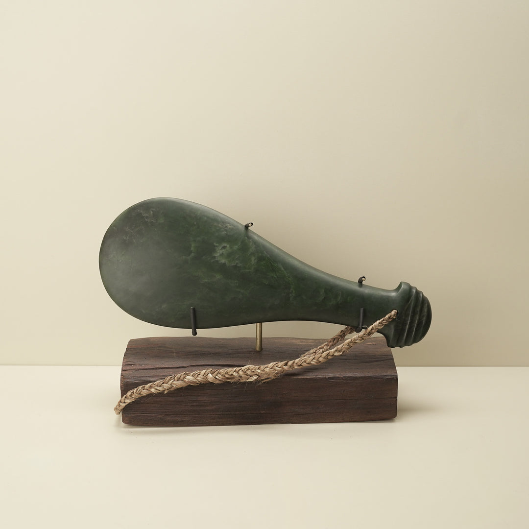 Mere Pounamu Sculpture Kawakawa & Kauri Base