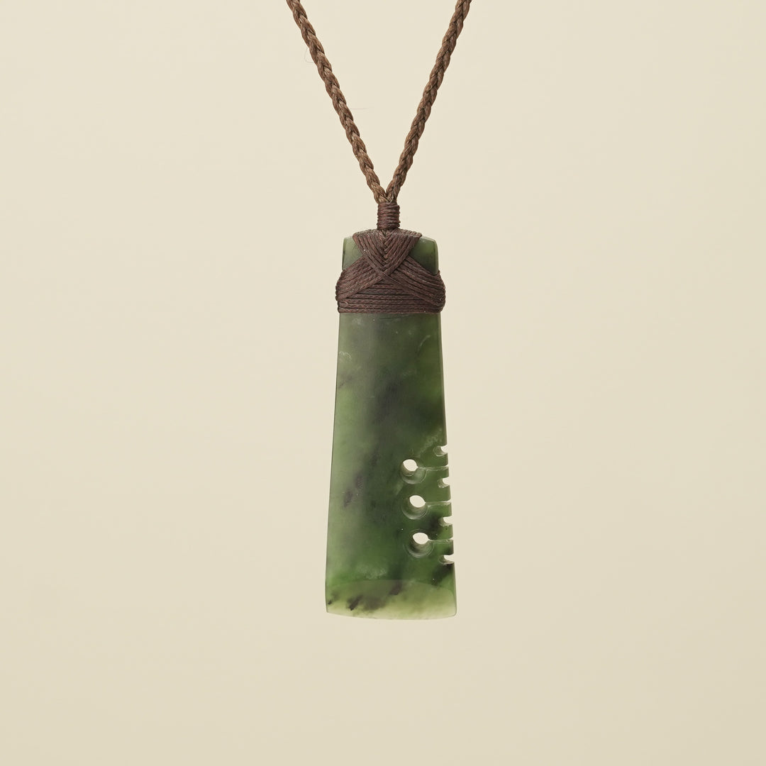 Notched Toki Kahurangi Medium Pounamu Pendant Brown Binding