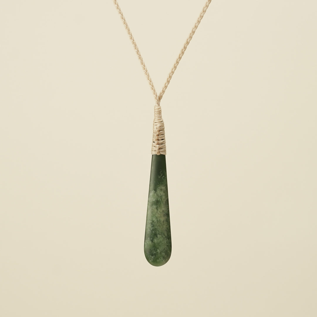Roimata Teardrop Kawakawa Medium Pendant, Tan Binding