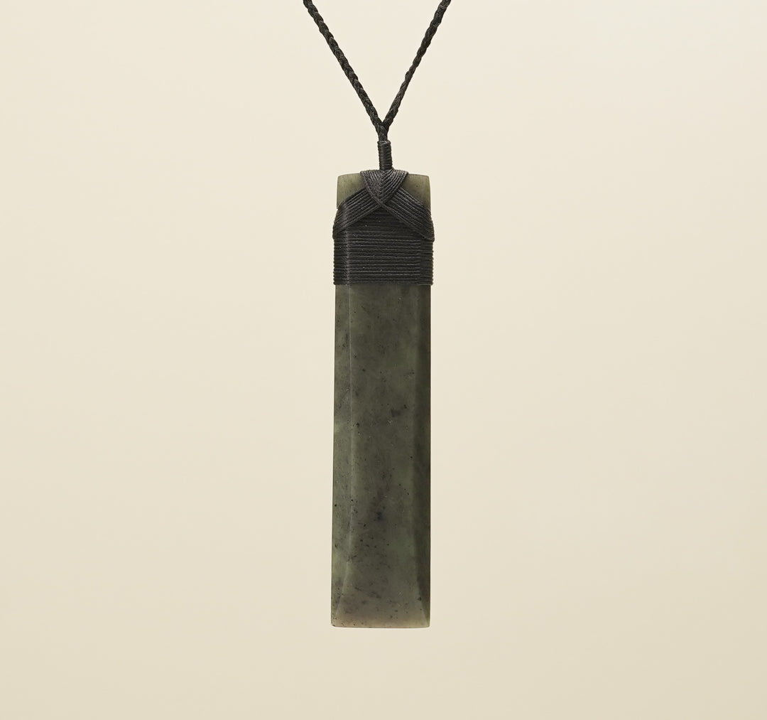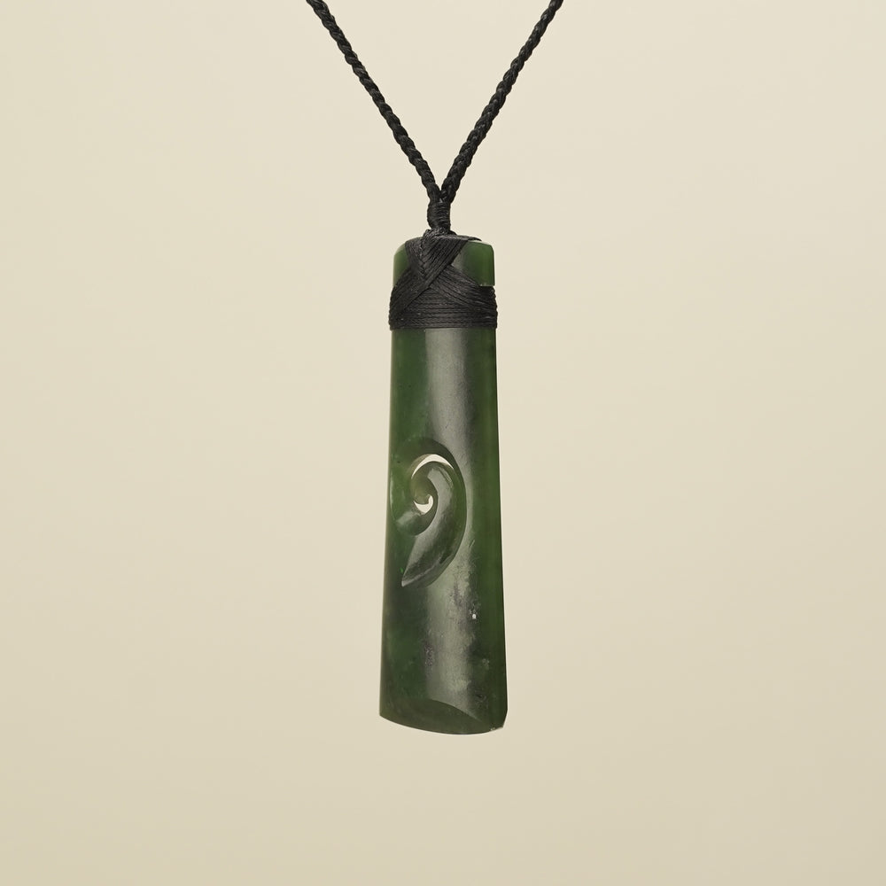 Toki Kōkopu Pounamu Matte XL Pendant, Tan Binding