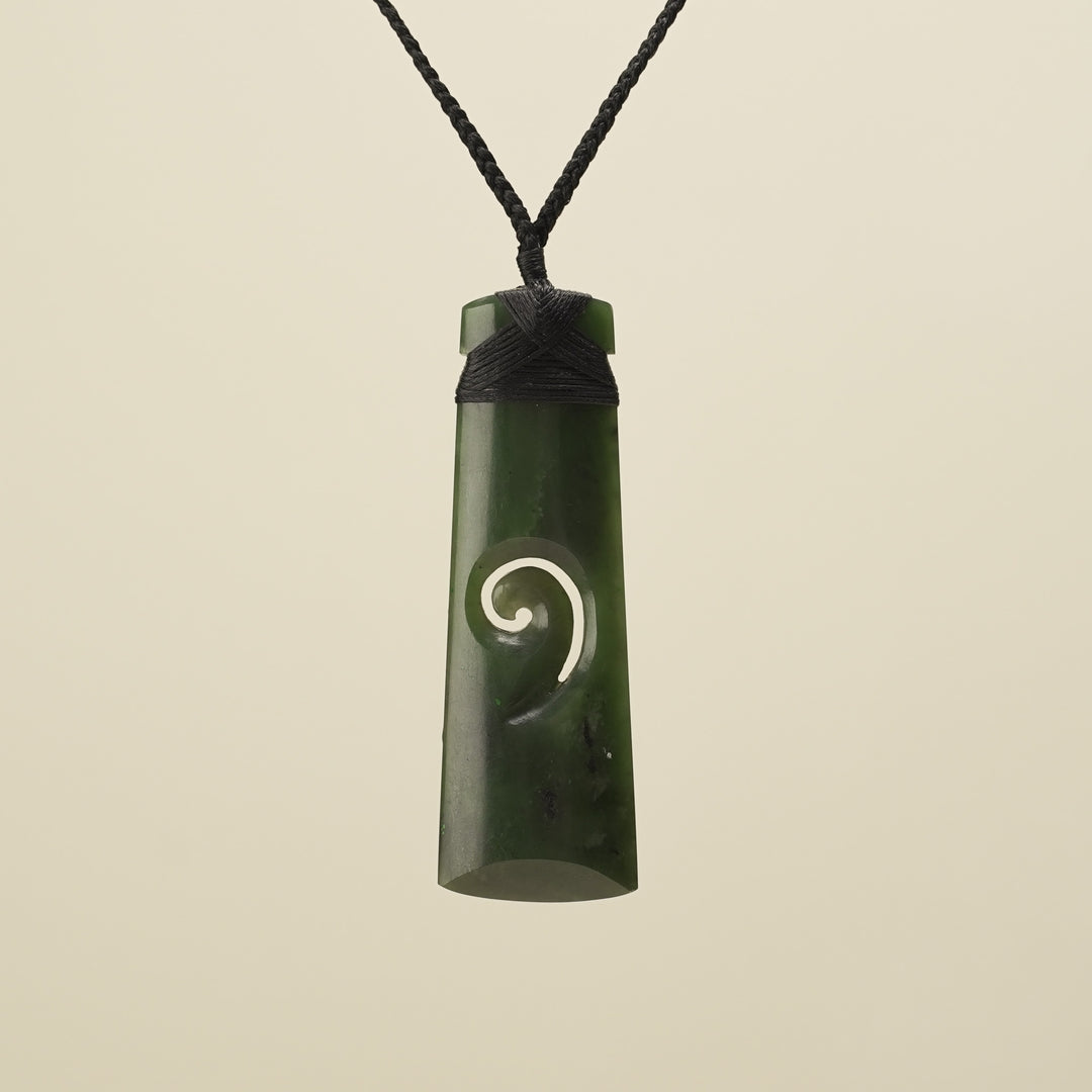 Toki Kawakawa Kahurangi Pounamu Large Pendant, Black Binding