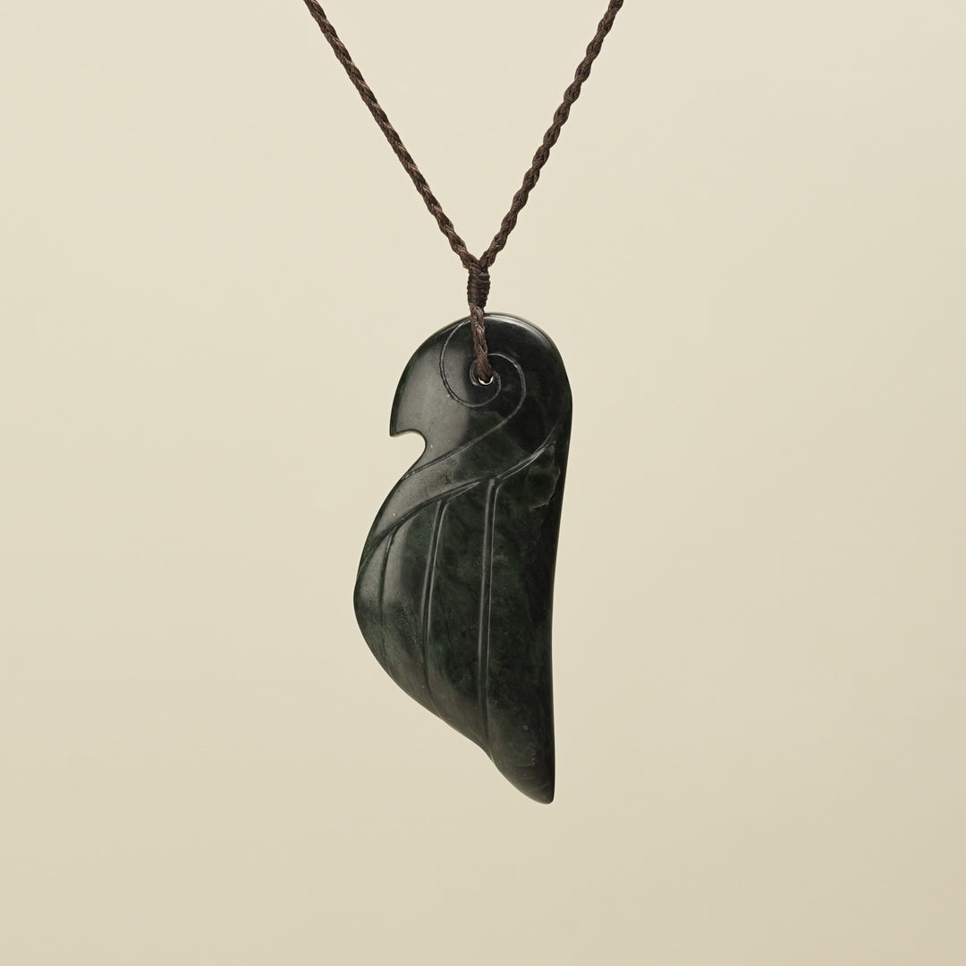 Manu Bird Large Pounamu Pendant, Brown Binding