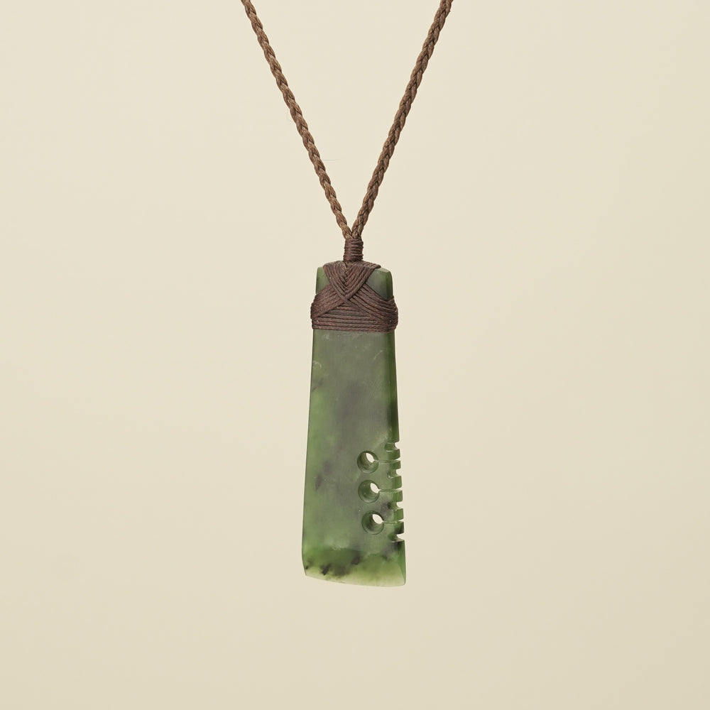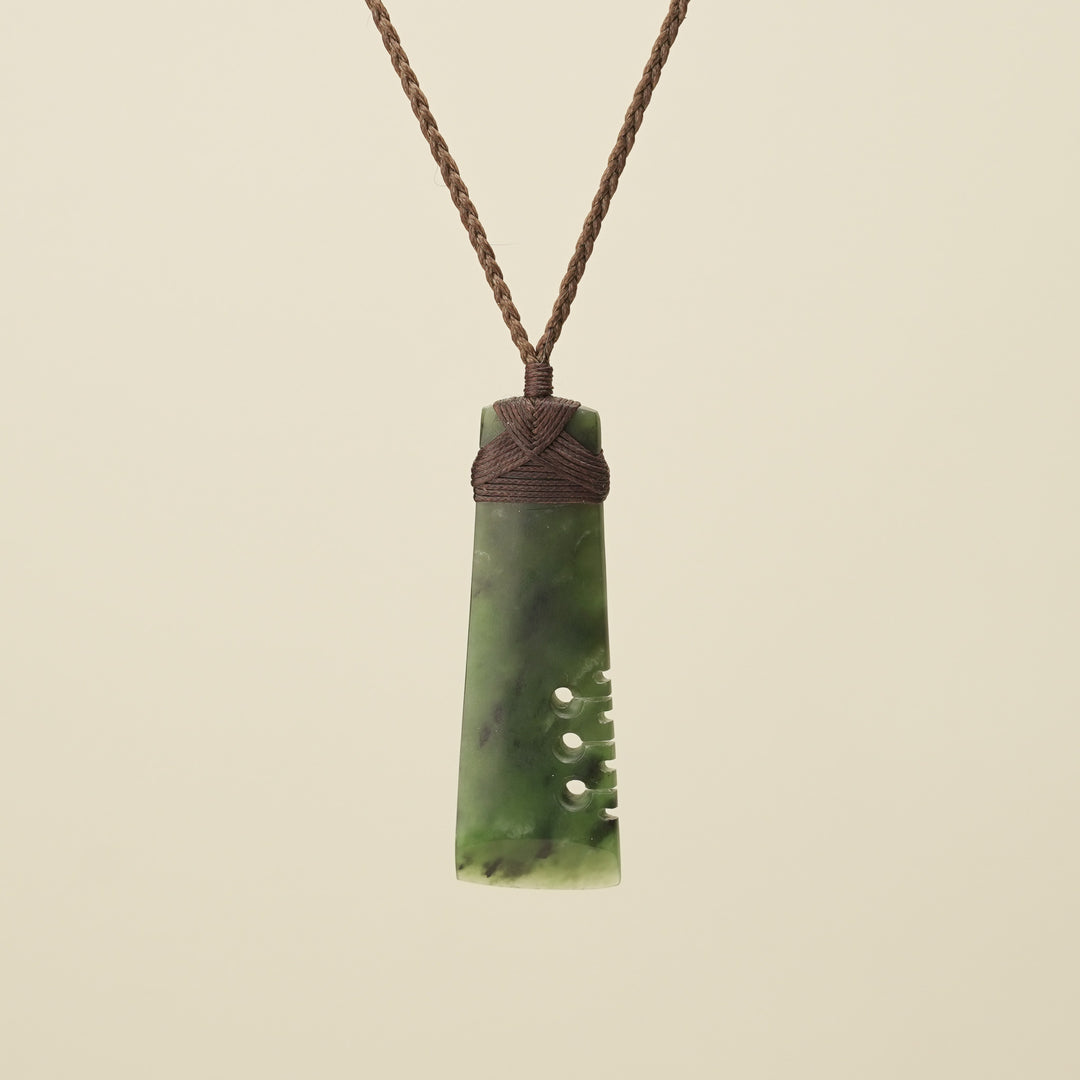 Notched Toki Kahurangi Medium Pounamu Pendant Brown Binding