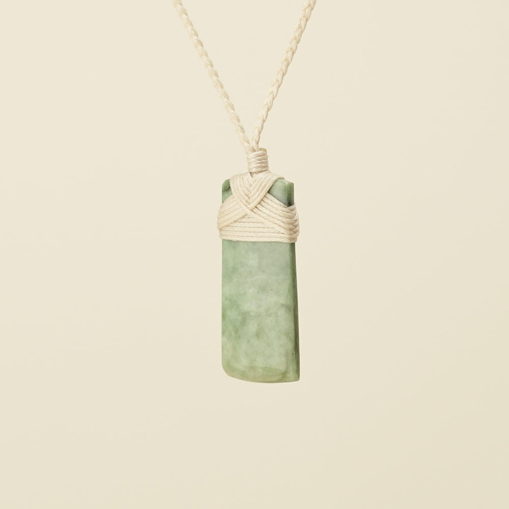 Toki Kawakawa Pounamu – Small Medium Pendant, Tan Binding I