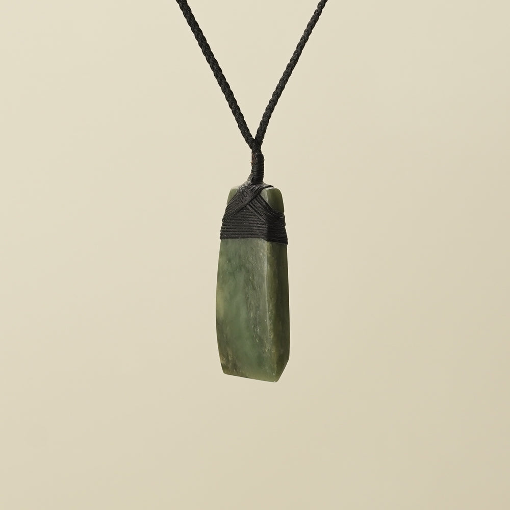 Toki Raukaraka Pounamu Medium Large Pendant, Black Binding