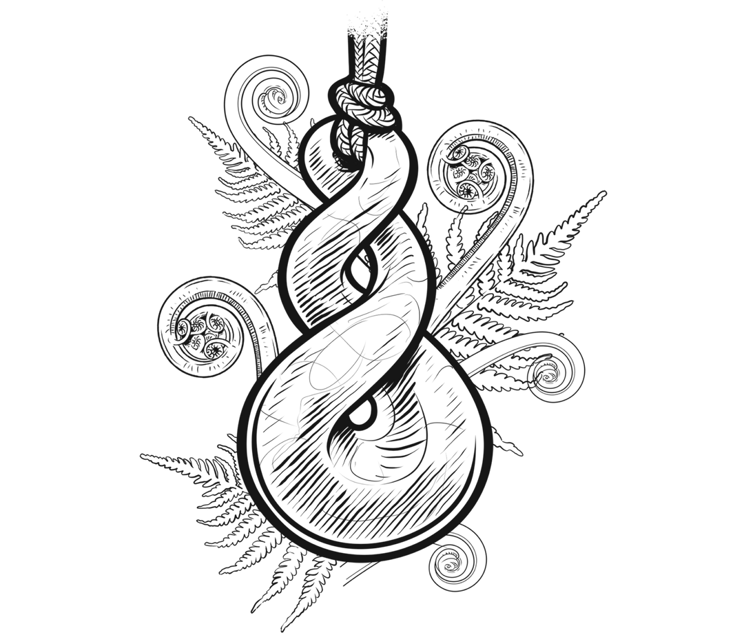 Symbolising the intertwining of lives, this large double twist pendant is carved from New Zealand greenstone with dark and light mossy Hapopo tones. It represents the enduring connections between whānau, groups, or more than two individuals, embodying the lasting bonds of friendship, love, and shared experiences. The pendant comes with a black hand-bound and woven adjustable cord. It is presented in an eco-friendly box with cards explaining its meaning and care instructions.