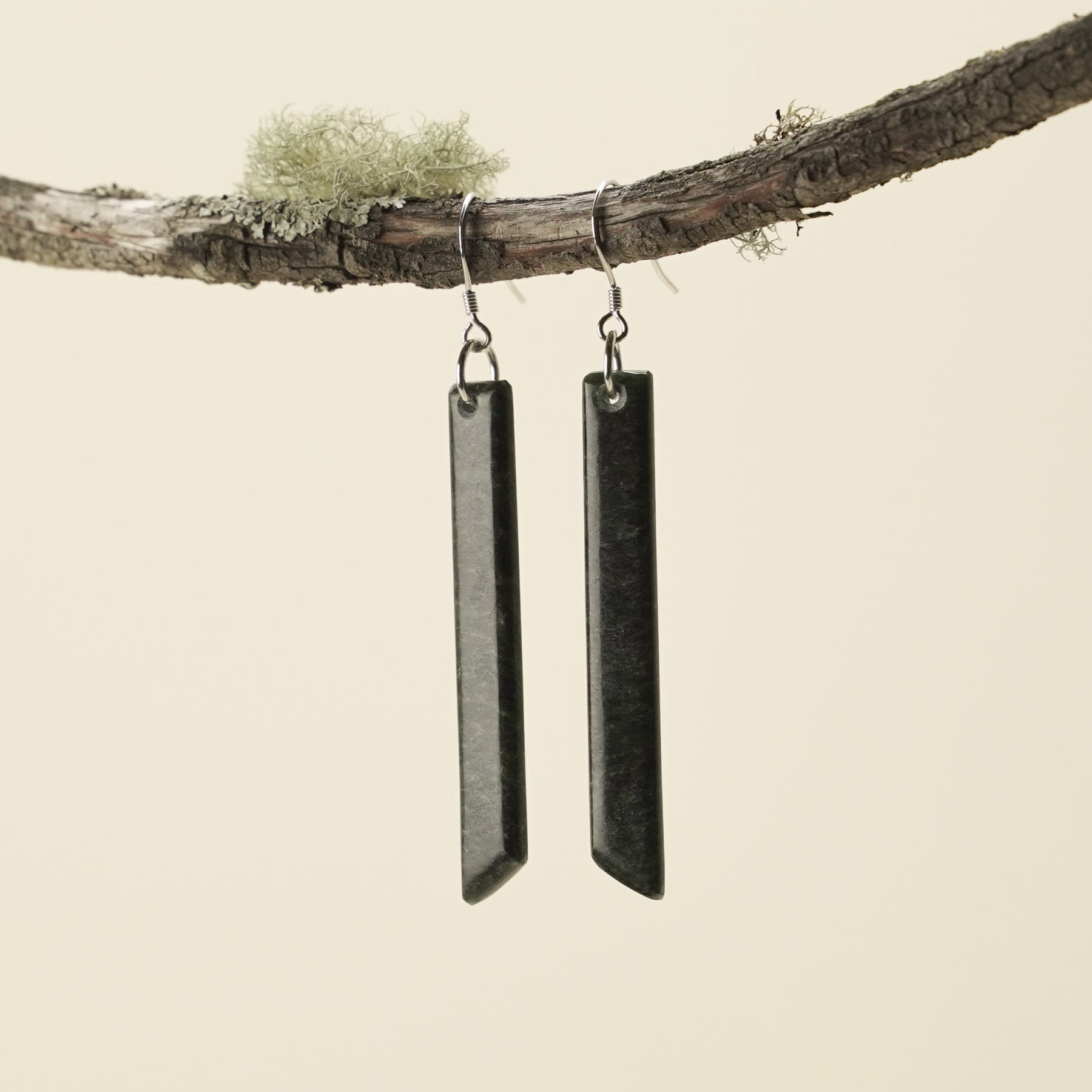 Handcrafted by Alex Sands Carving Studio, these natural drop earrings are carved from Hapopo pounamu. They showcase beautiful dark green tones & mossy streaks, adding unique character to each piece. These earrings have been finished in a matte polish to highlight their raw beauty. Set in 925 sterling silver and elegantly presented in an eco-friendly box, the perfect for celebrating connection, heritage, and inner strength.