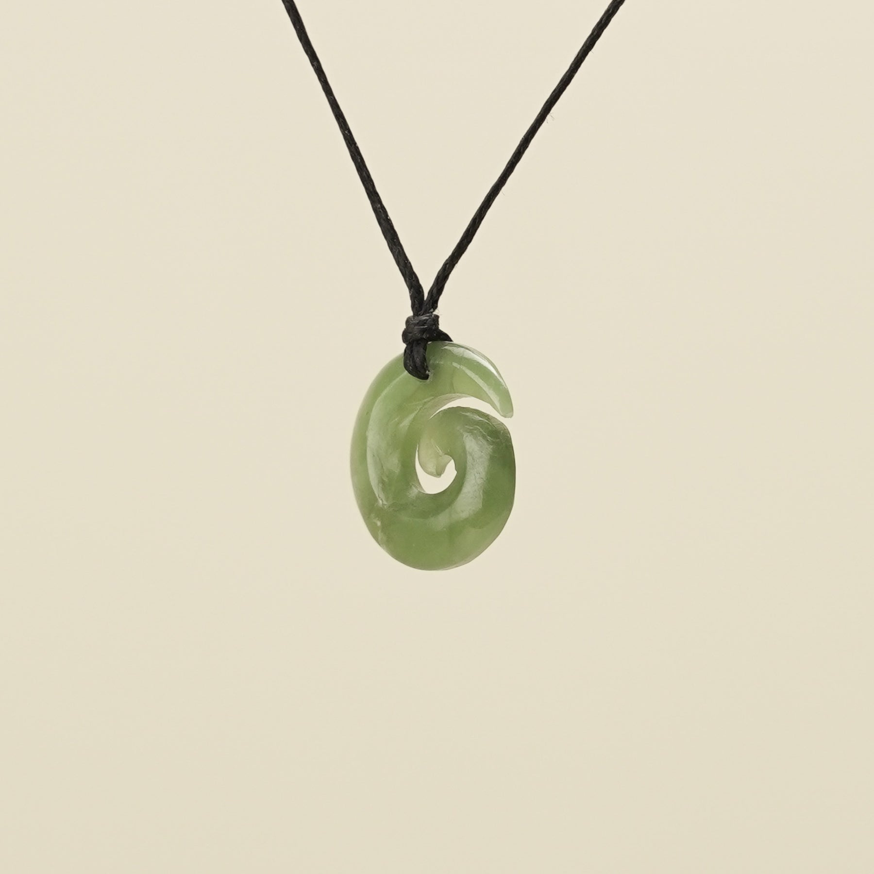 This extra small Koru pendant, carved from Kahurangi Pounamu symbolises new beginnings, it embodies growth, strength, and inner peace. The pendant comes with a brown adjustable cord. Presented in an eco-friendly box, it includes cards detailing its meaning and care instructions, making it a thoughtful taonga.