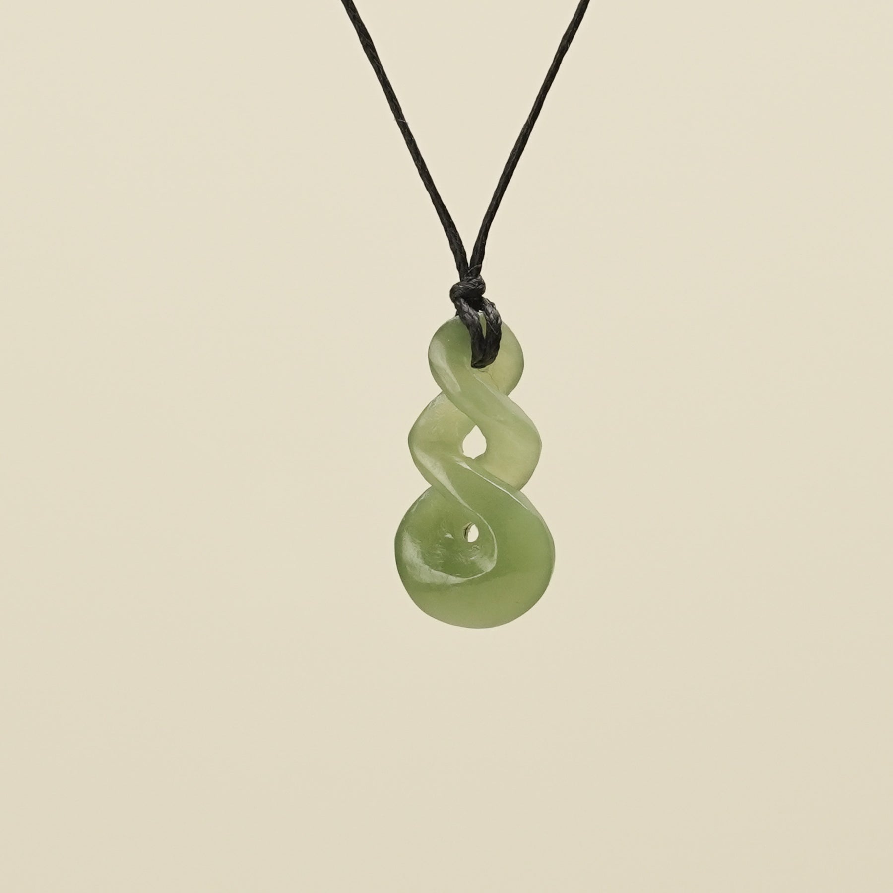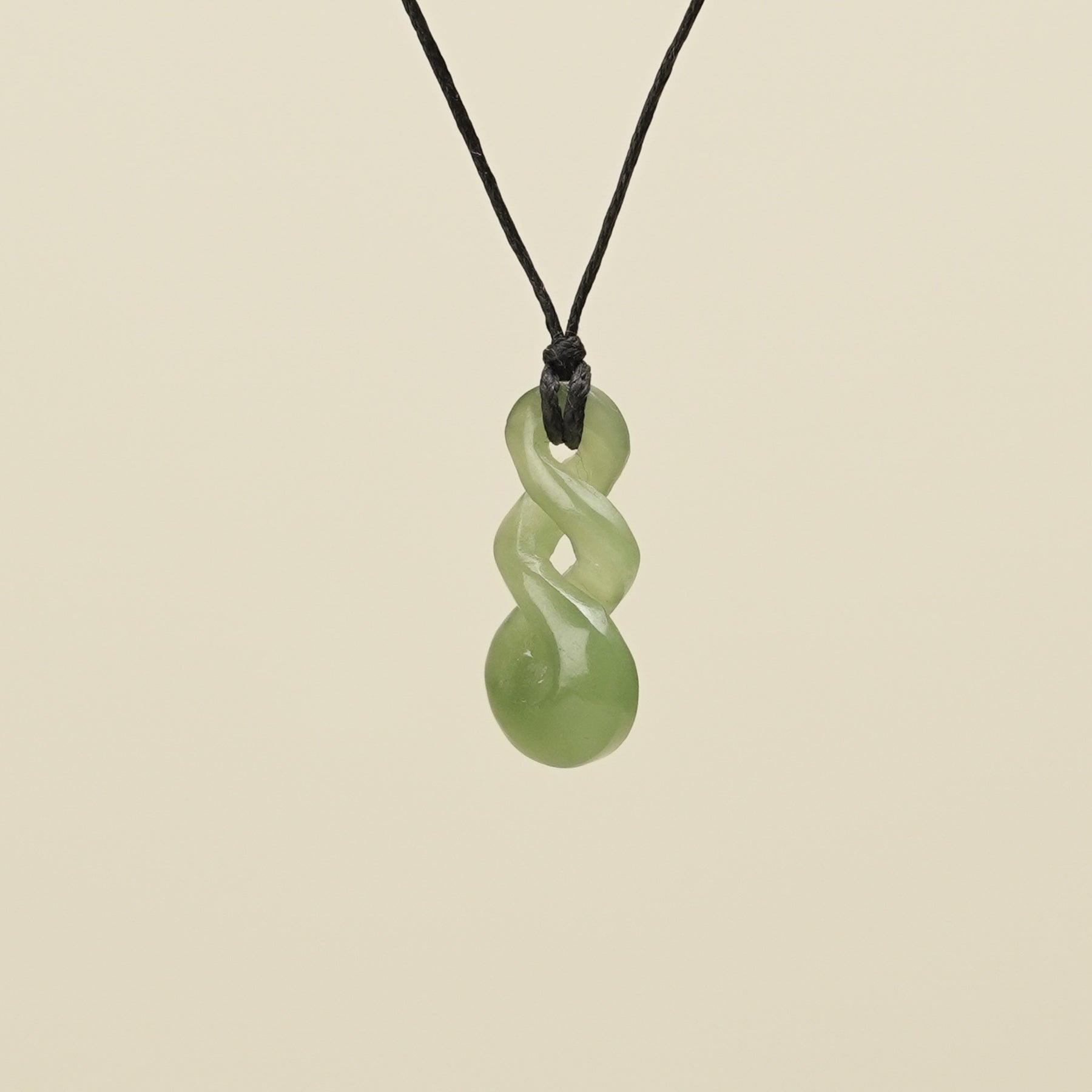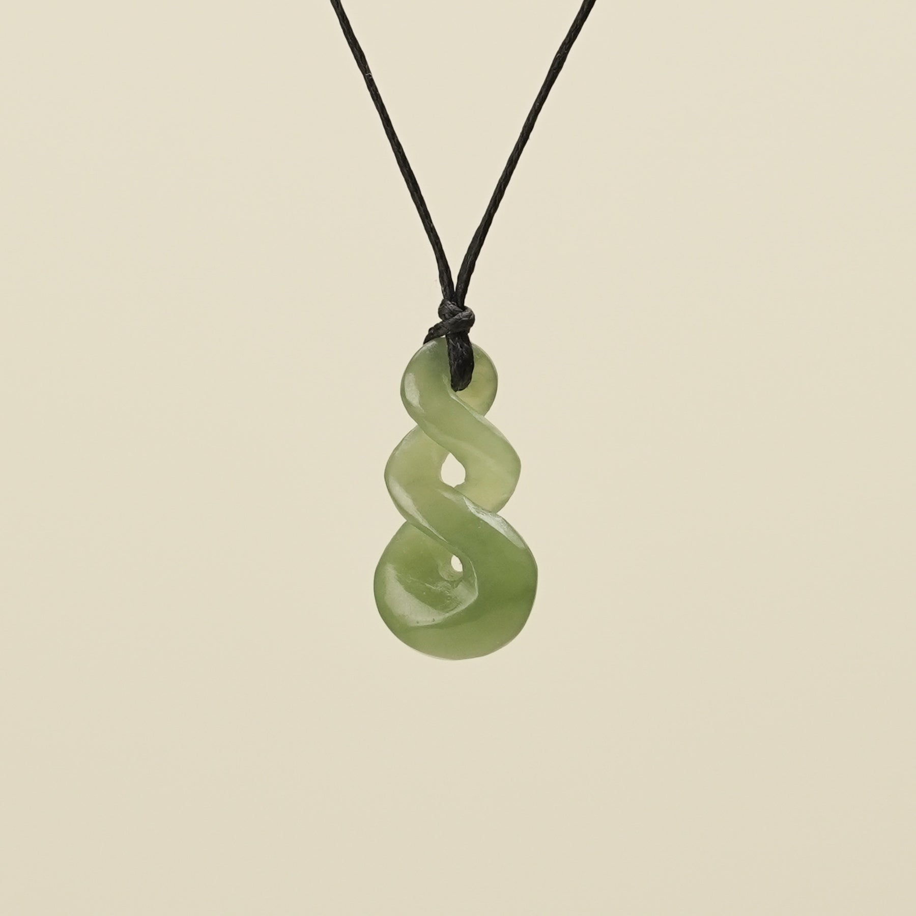Hand-carved from Kahurangi greenstone, prized for its distinct light-green hue, this polished Pikorua Twist represents aroha and eternal connection, linking two souls across distance and whakapapa (genealogy). Presented on an adjustable black cord, each pendant arrives in an eco-friendly box with hand-drawn meaning and care cards, making it a treasured taonga.
