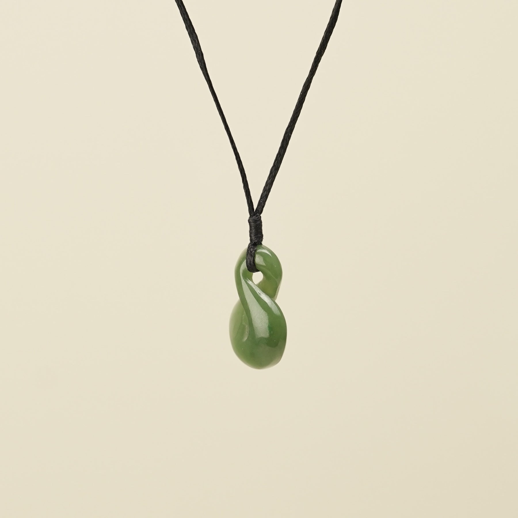 Carved from Kahurangi greenstone and polished to reveal its rich green hues, this small Pikorua (Single Twist) pendant features a classic design symbolising an eternal, unbreakable connection. The flowing twist represents two lives woven together in aroha, embodying a lasting bond. It includes an adjustable black cord and is presented in an eco-friendly box with hand-drawn meaning and care cards, a cherished taonga, perfect for someone special.