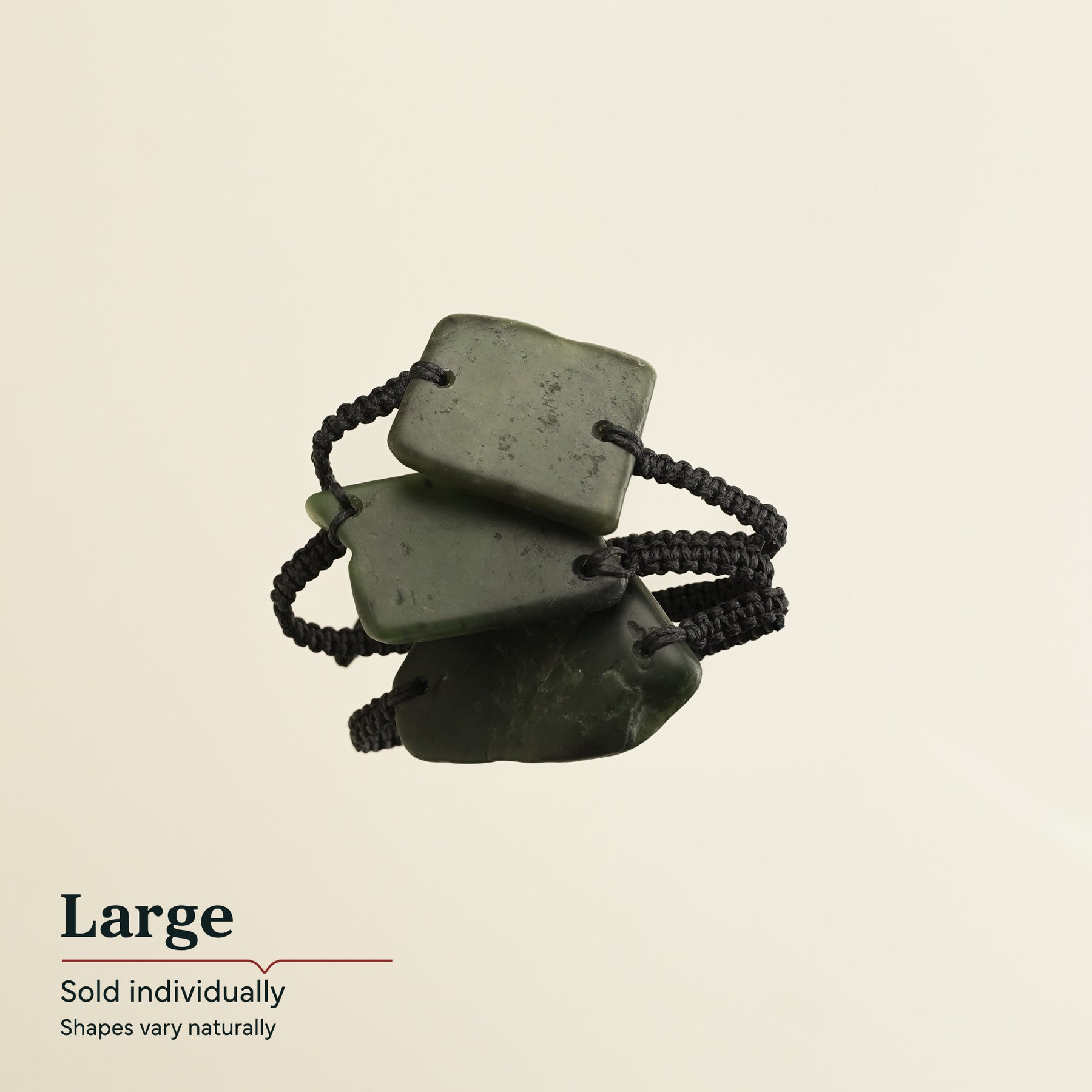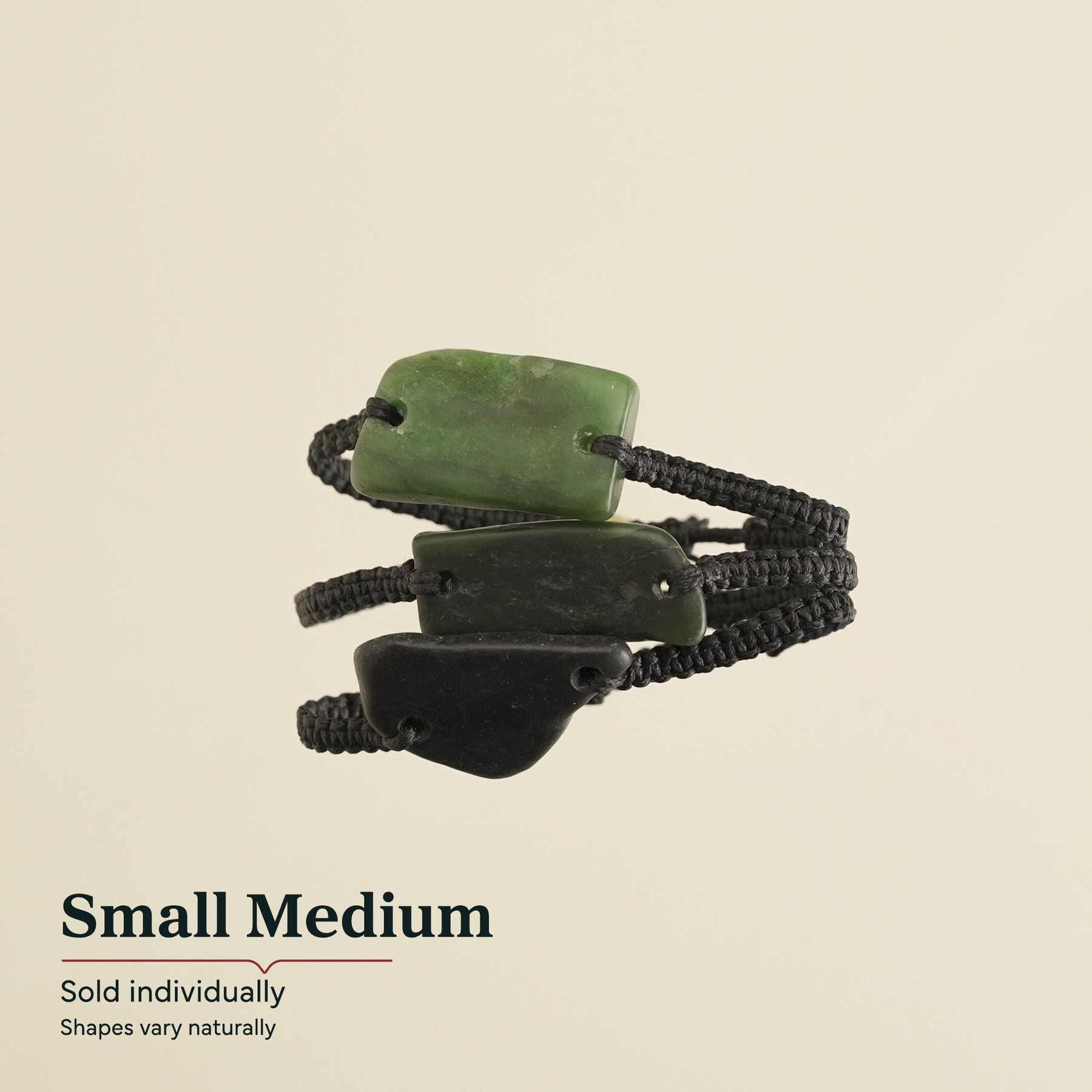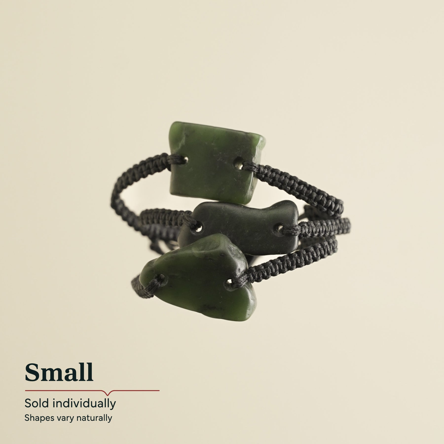 Carved from natural New Zealand greenstone, each bracelet carries its own mana, reflected in the unique colour, texture, and form of every river-tumbled stone. Made and woven in Arrowtown, these bracelets symbolise connection, aroha, and protection — meaningful taonga worn close and treasured for years to come.