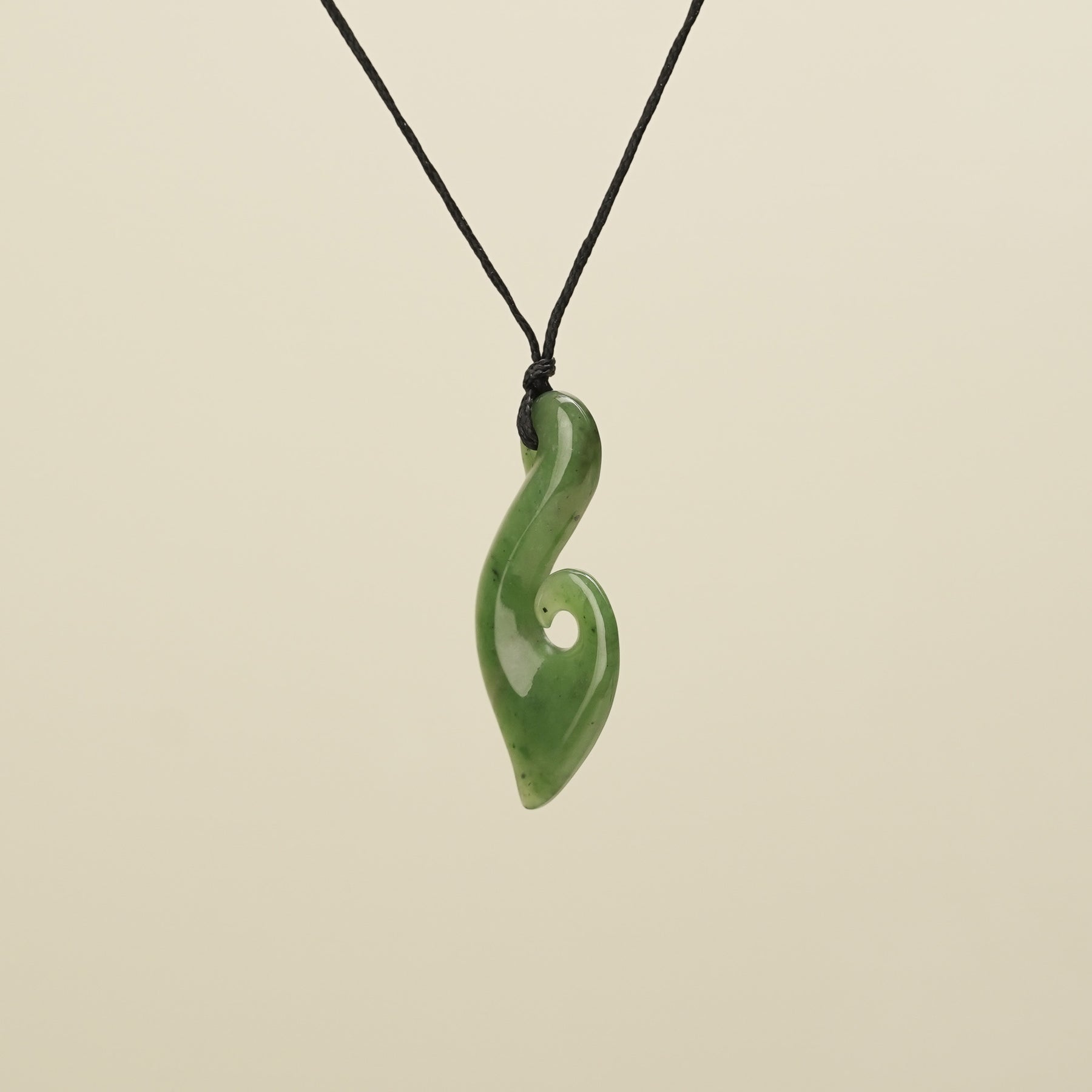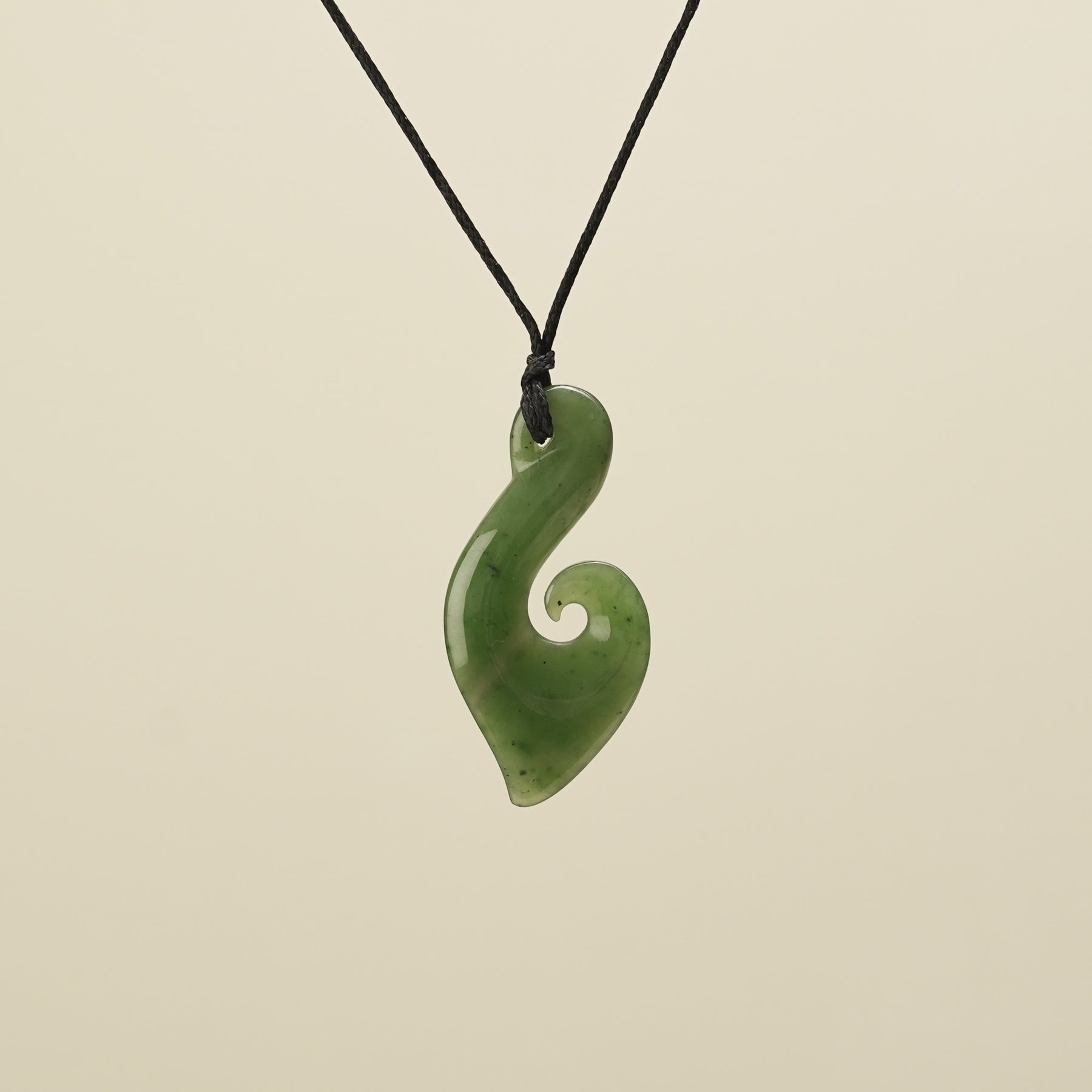 The Hei Matau (fish hook) greenstone pendant represents protection, strength, and safe journeys, reflecting a deep connection to te moana (the sea). Carved from Kawakawa greenstone, this pendant symbolises resilience, connection, and the spirit of guardianship and aroha. Paired with an adjustable black cord and presented in an eco-friendly box with meaning and care cards detailing its significance, this pendant is a meaningful taonga.