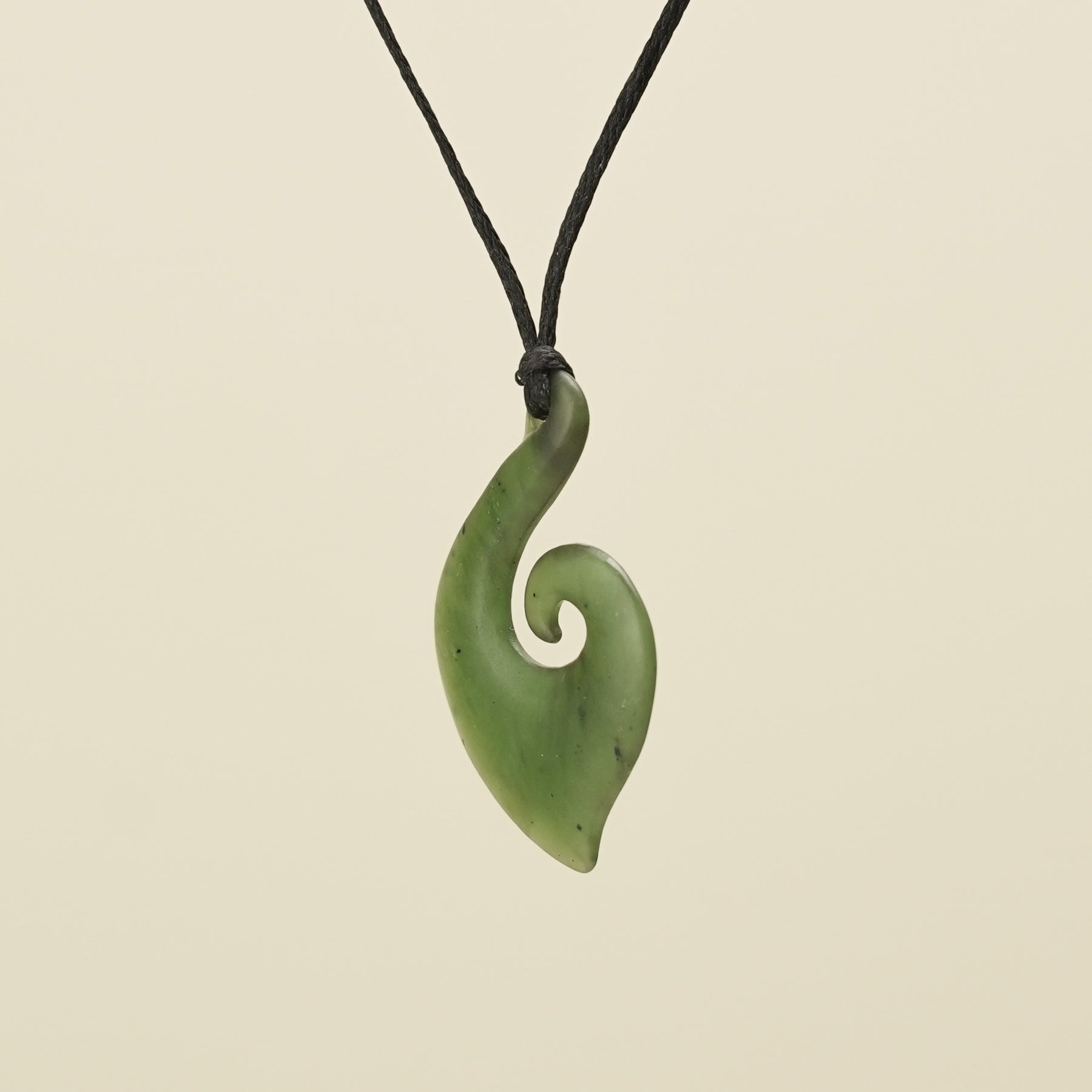 The Hei Matau (fish hook) pounamu pendant represents protection, strength, and safe journeys, reflecting a deep connection to te moana (the sea). Carved from Kawakawa greenstone, it is paired with an adjustable cord. Presented in an eco-friendly box with hand-drawn cards detailing its significance and care, this pendant is a meaningful taonga symbolising resilience, connection, and the spirit of guardianship and aroha.