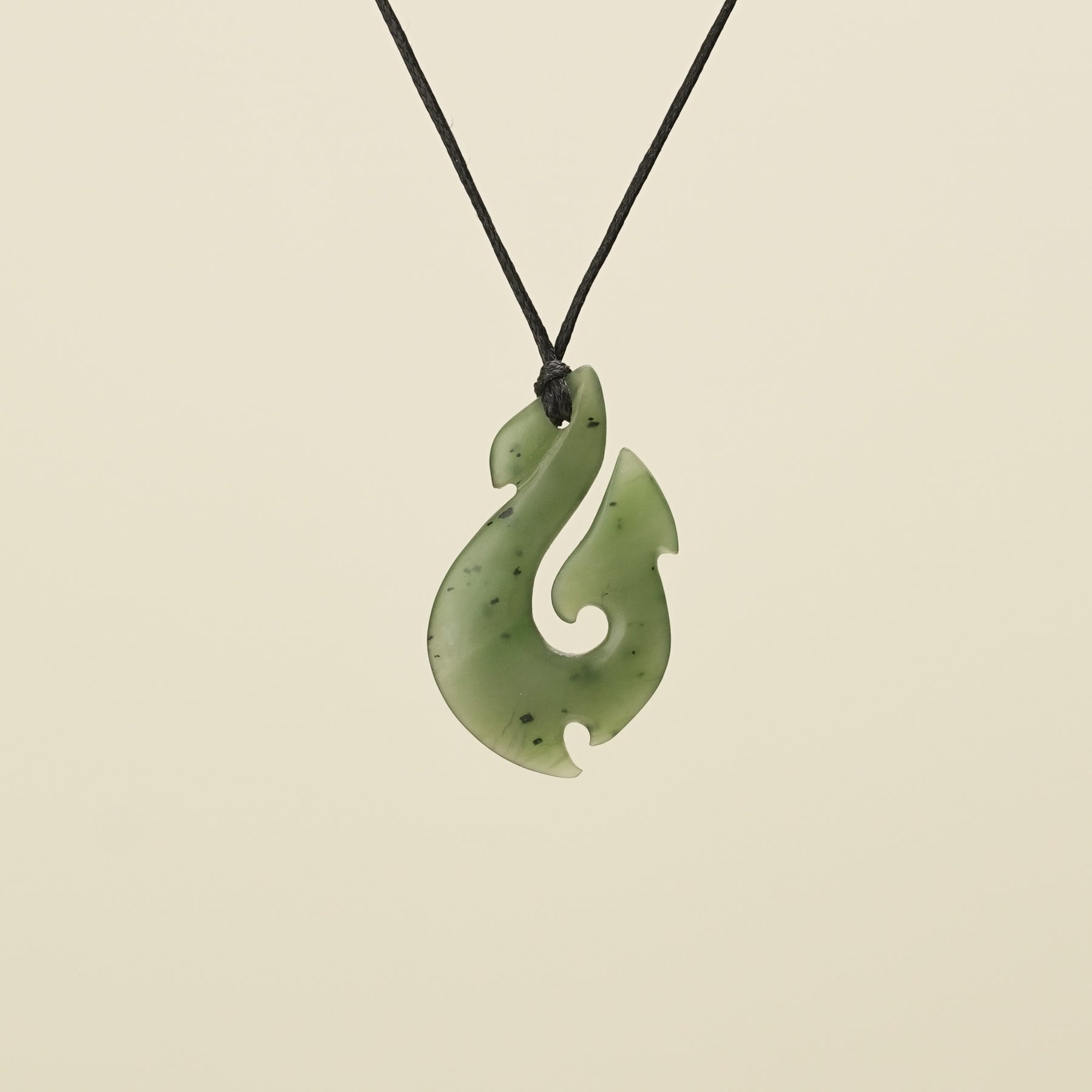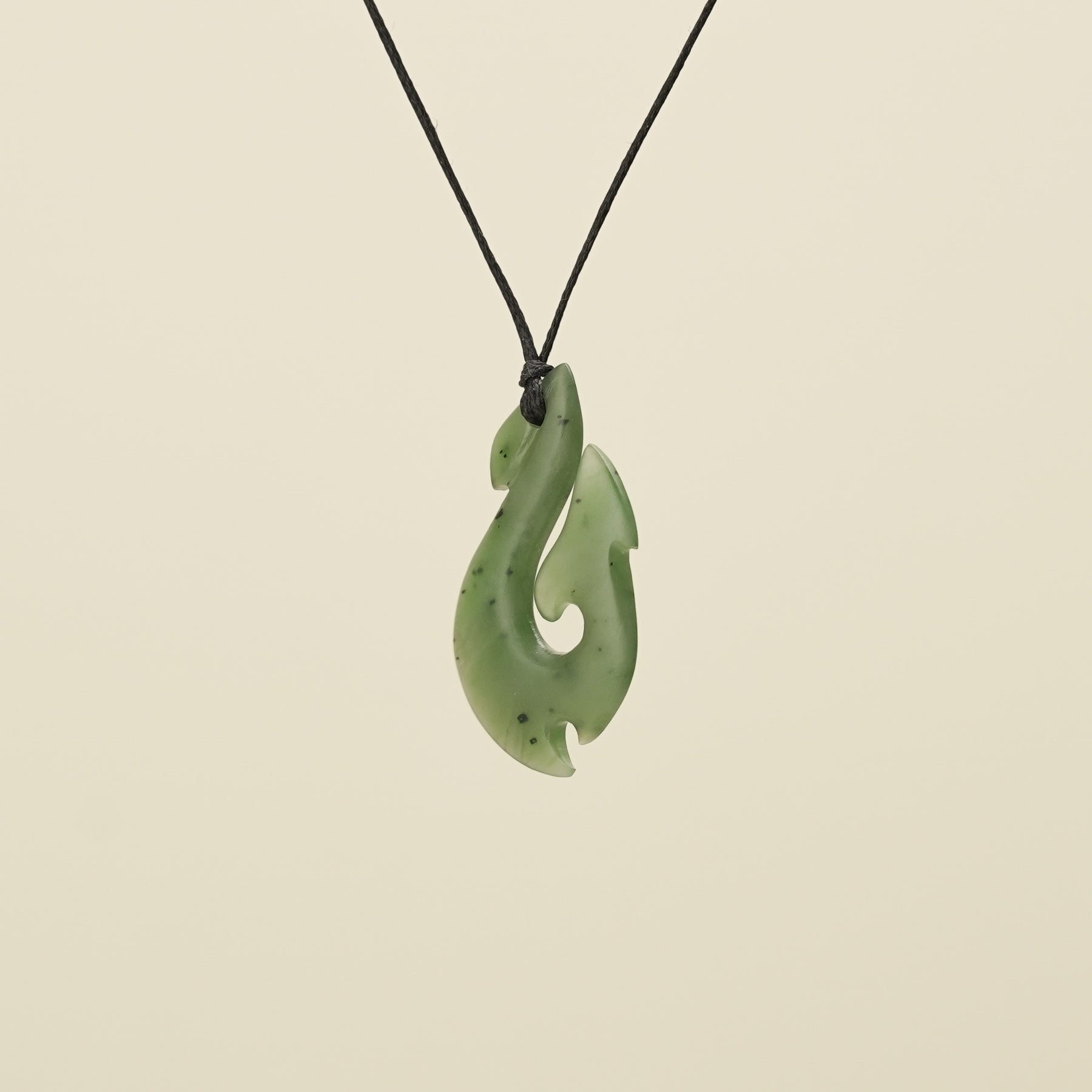 The Hei Matau (fish hook) pounamu pendant represents protection, strength, and safe journeys, reflecting a deep connection to te moana (the sea). Carved from Kawakawa greenstone, it is paired with an adjustable cord. Presented in an eco-friendly box with hand-drawn cards detailing its significance and care, this pendant is a meaningful taonga symbolising resilience, connection, and the spirit of guardianship and aroha.
