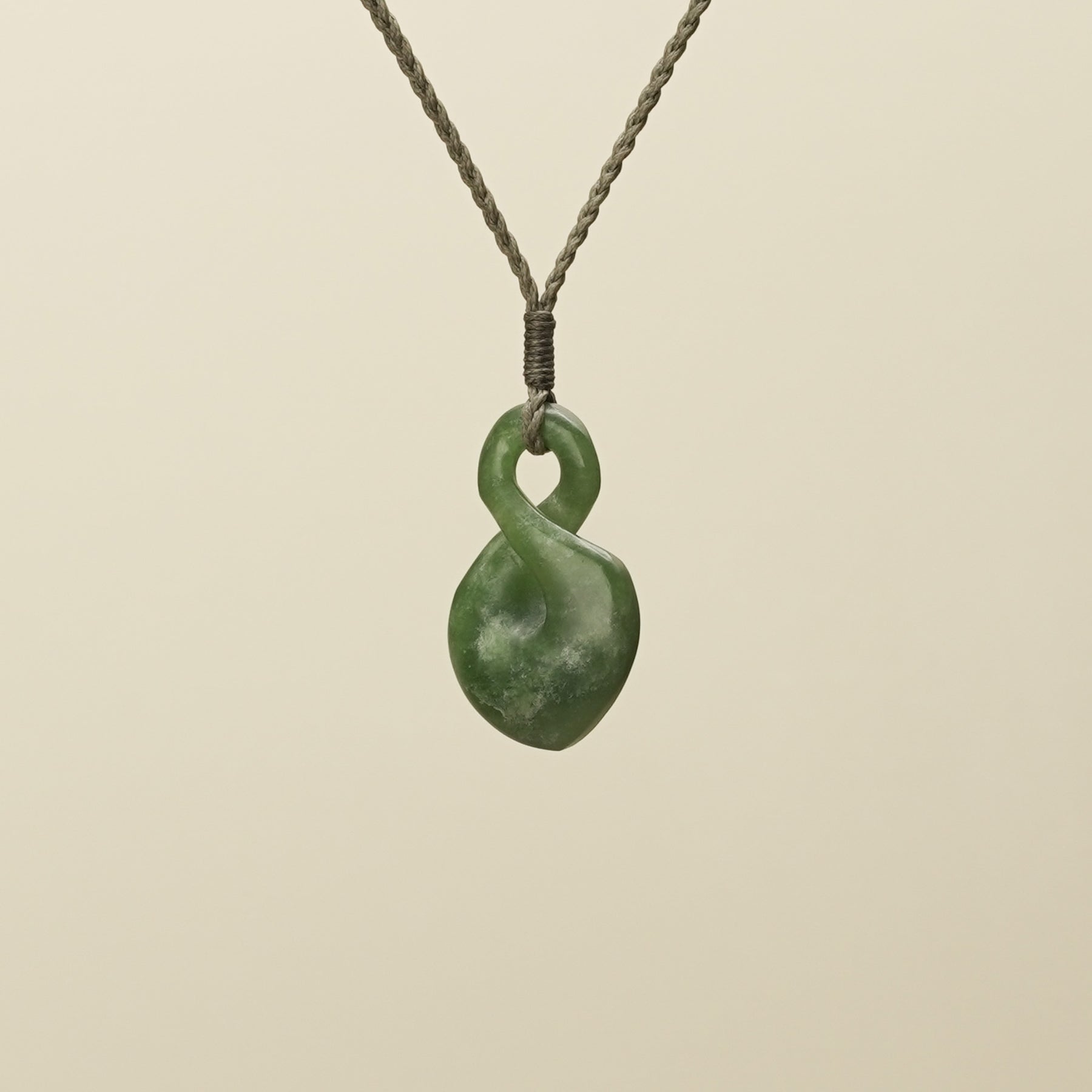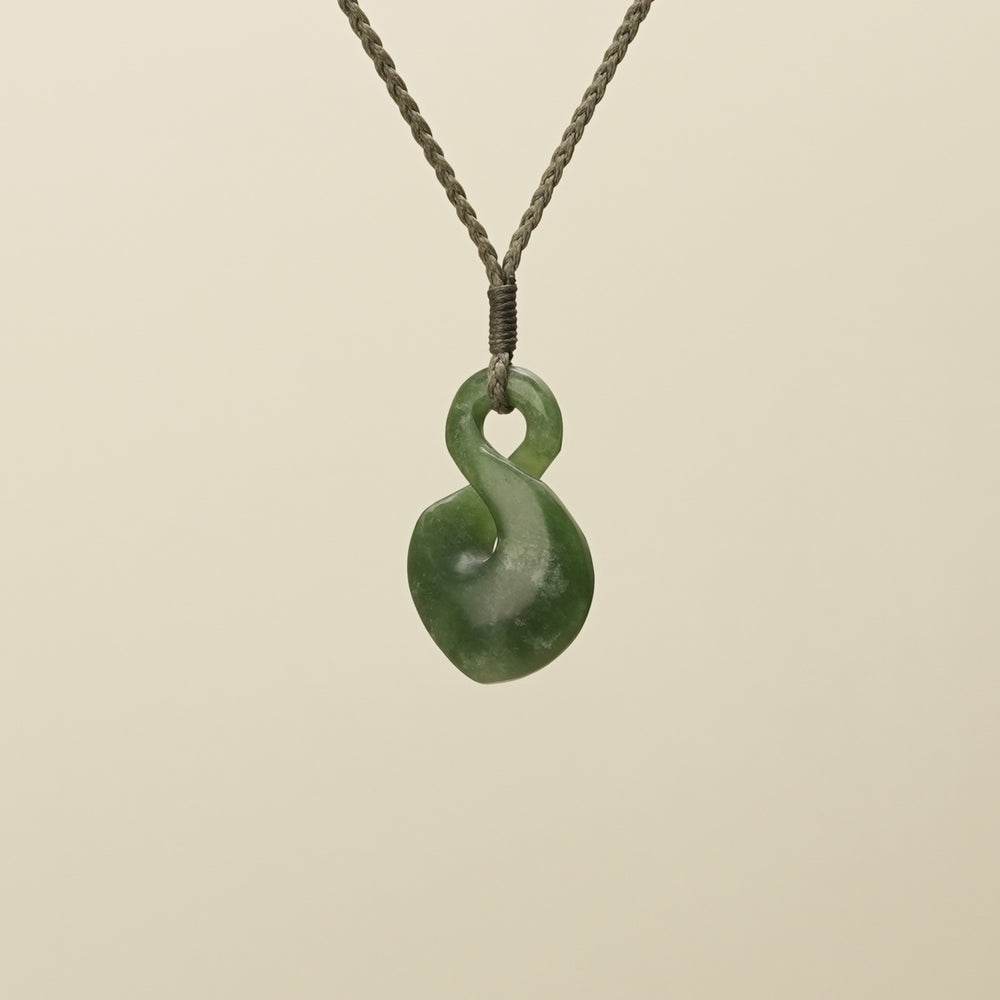 Symbolising the intertwining of lives, this small single twist pendant is carved from New Zealand pounamu with flower tones. It represents the enduring connections between whānau, groups, or more than two individuals, embodying the lasting bonds of friendship, love, and shared experiences.
