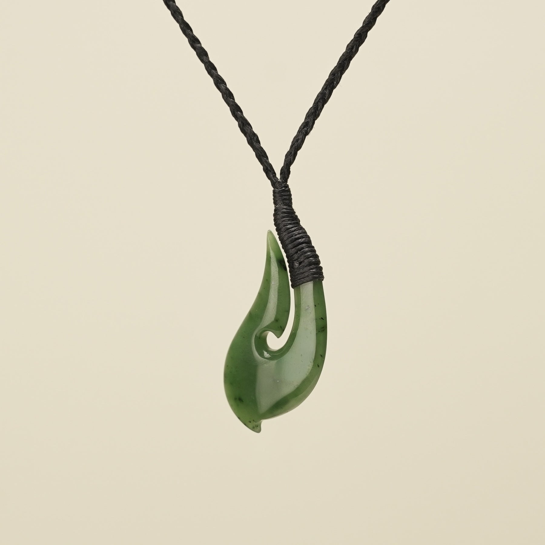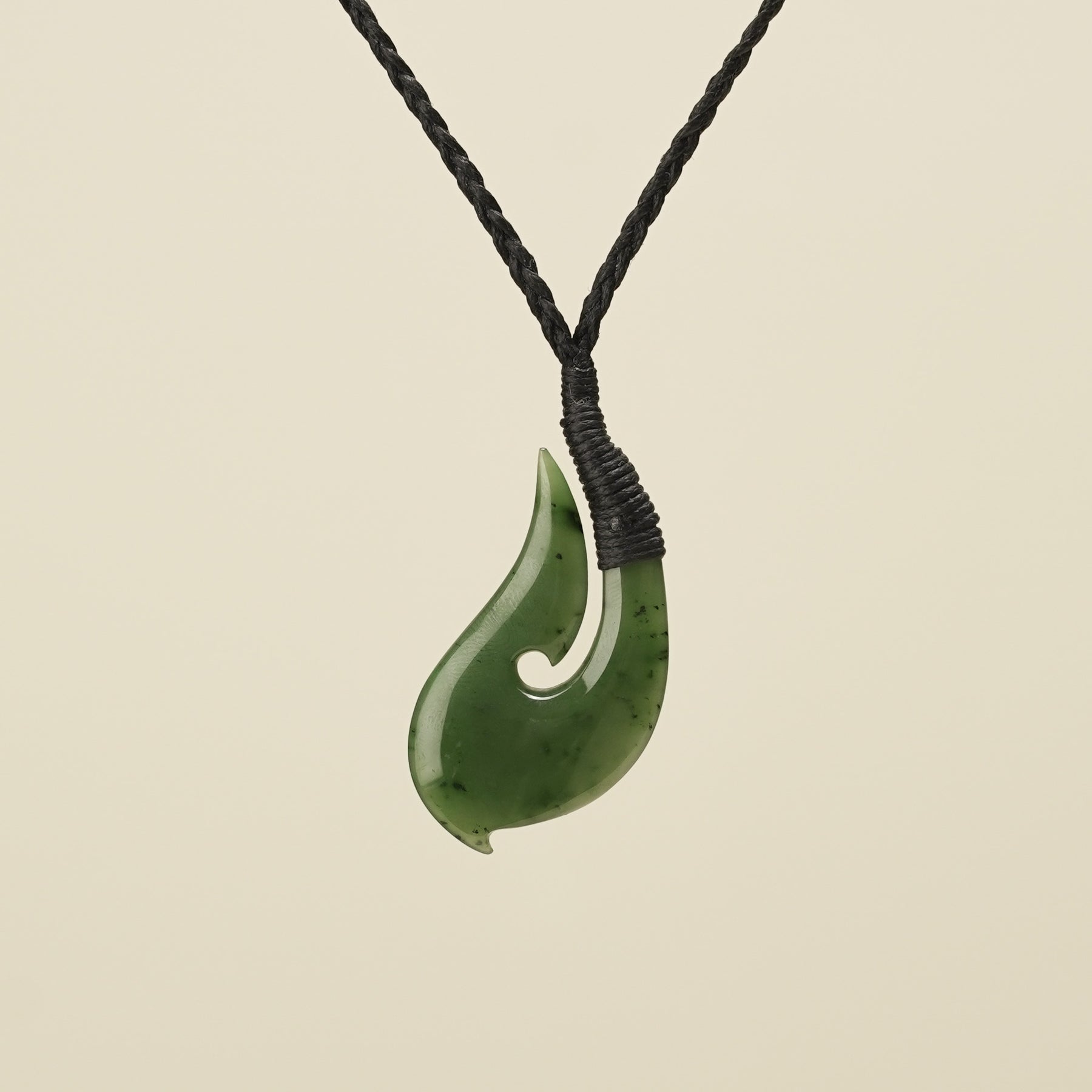 The Hei Matau (fish hook) greenstone pendant represents protection, strength, and safe journeys, reflecting a deep connection to te moana (the sea). Carved from Kawakawa greenstone, it is paired with a handwoven adjustable black cord. Presented in an eco-friendly box with hand-drawn cards detailing its significance and care, this pendant is a meaningful taonga symbolising resilience, connection, and the spirit of guardianship and aroha.
