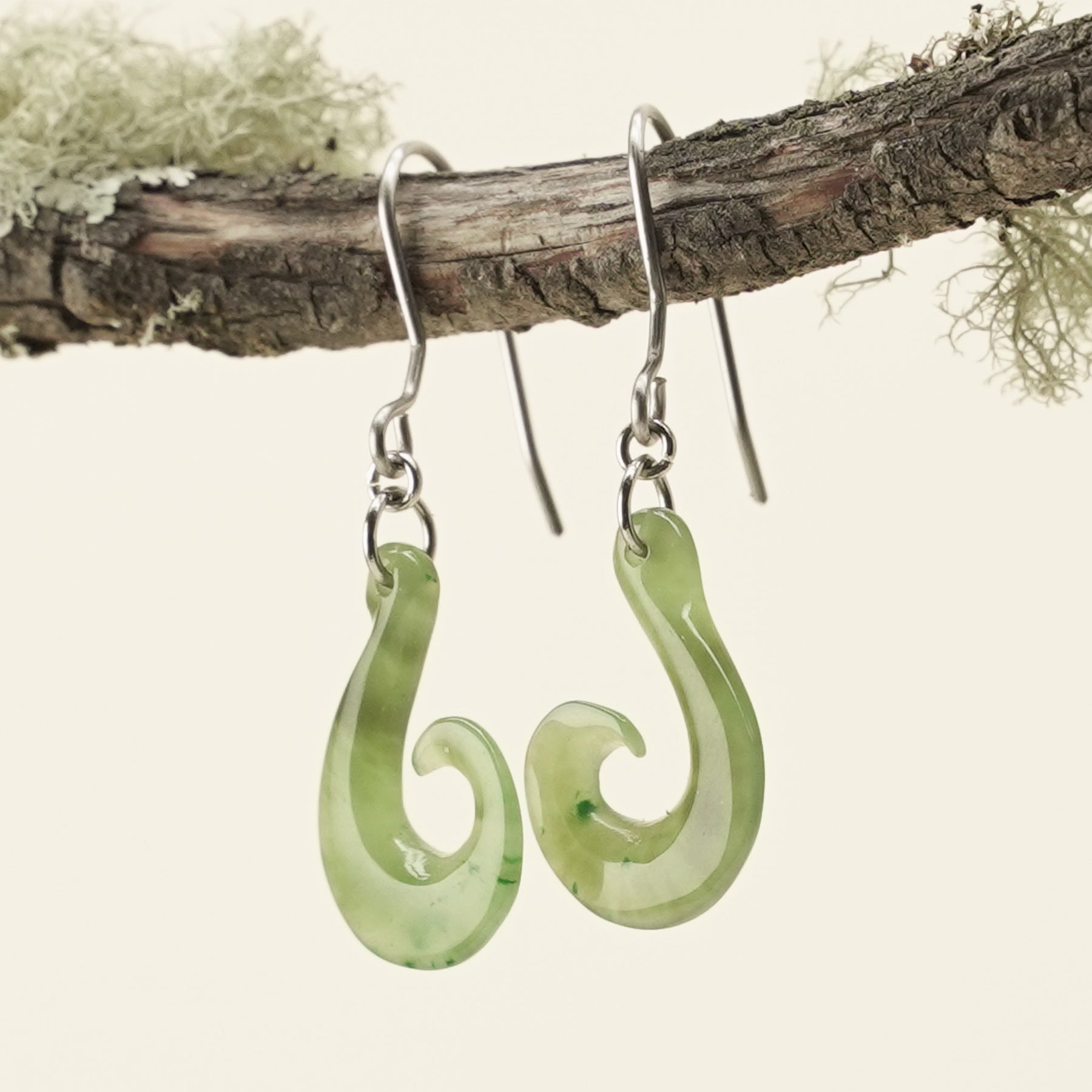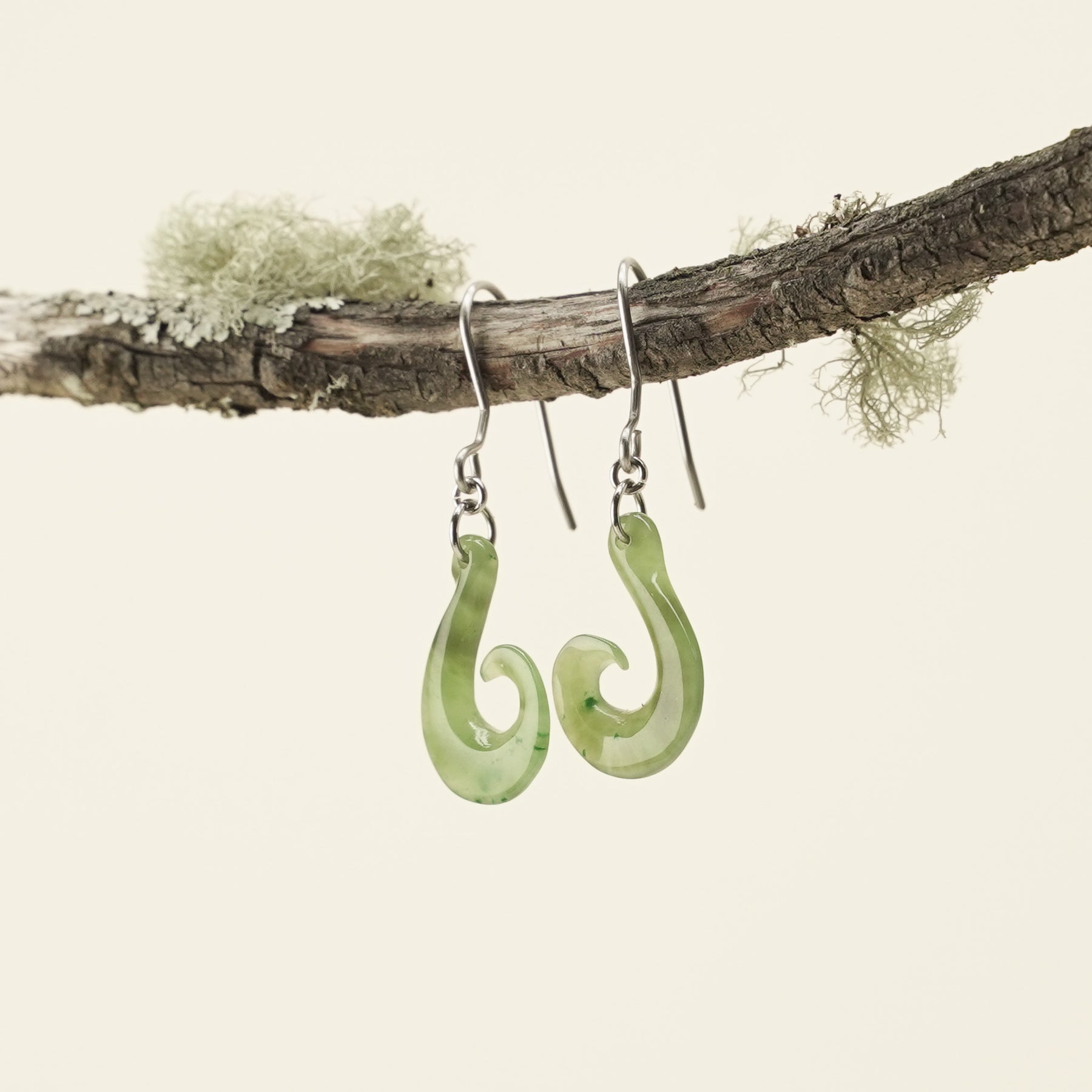 Carved from Kahurangi greenstone and artfully polished, these Hei Matau earrings embody our connection to the sea, symbolising protection and good luck. Set in surgical-grade steel, with its powerful presence, they grant strength and ensure safe travels on your journey. Presented in an eco-friendly box with a card explaining the stone's meaning and care, these earrings make a meaningful and thoughtful gift.