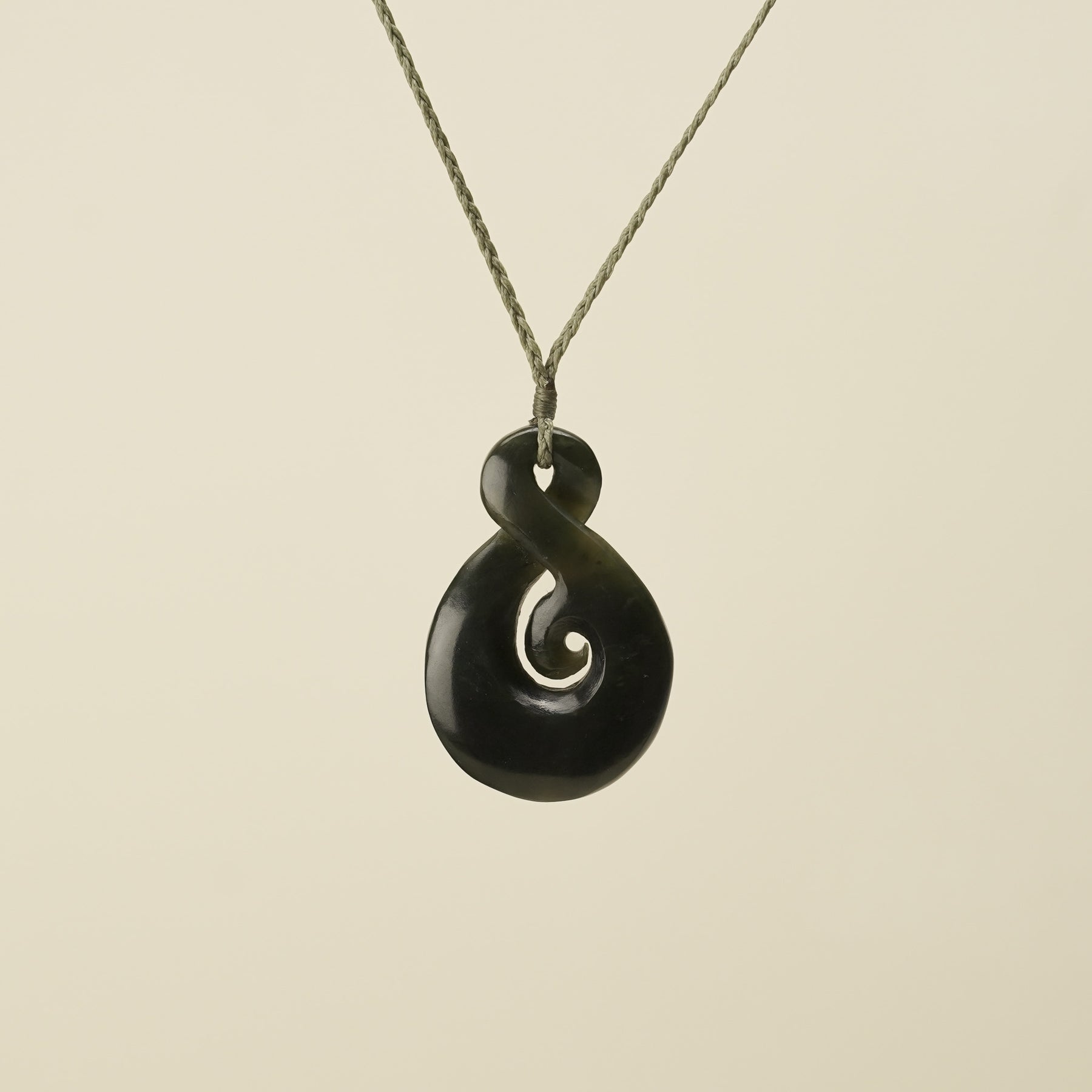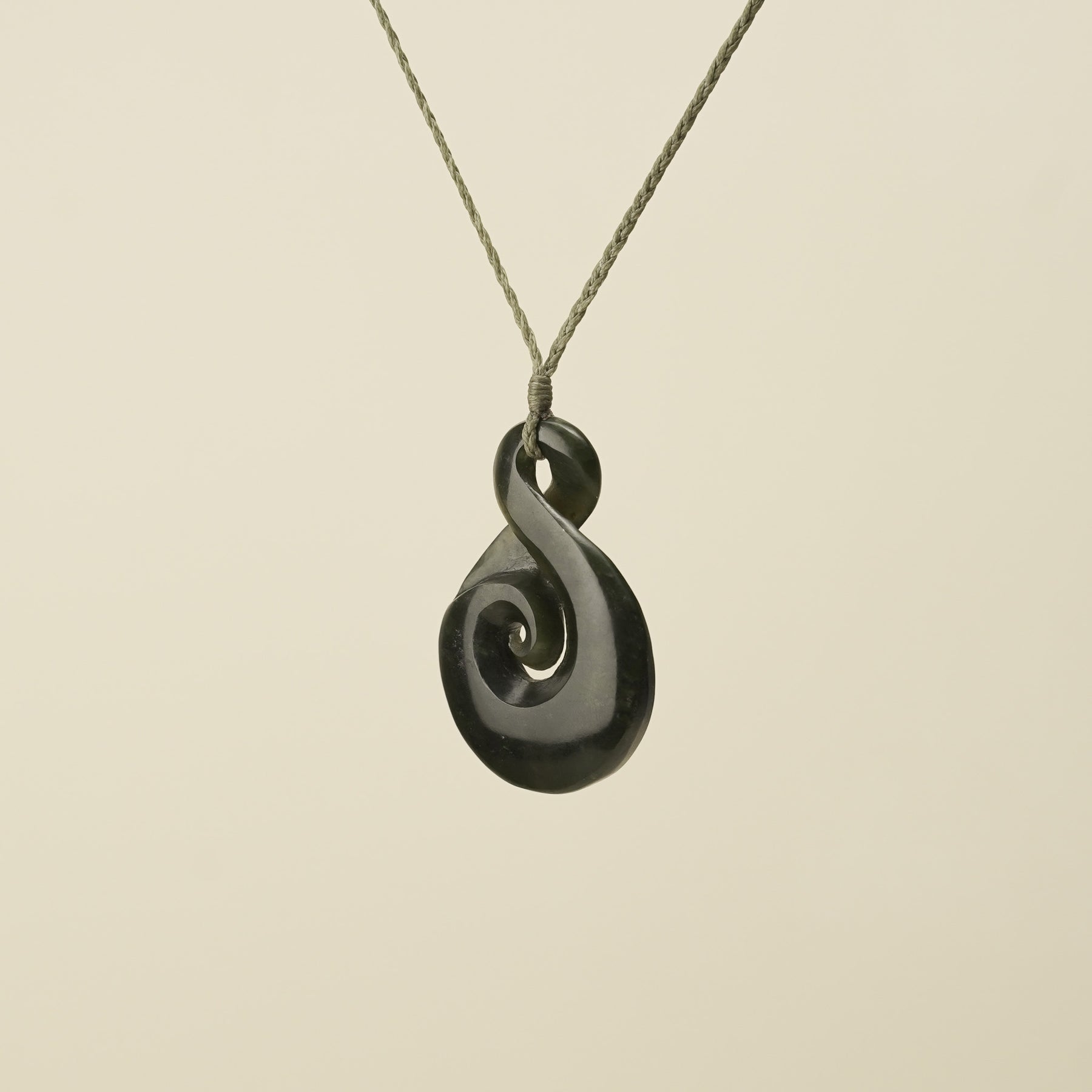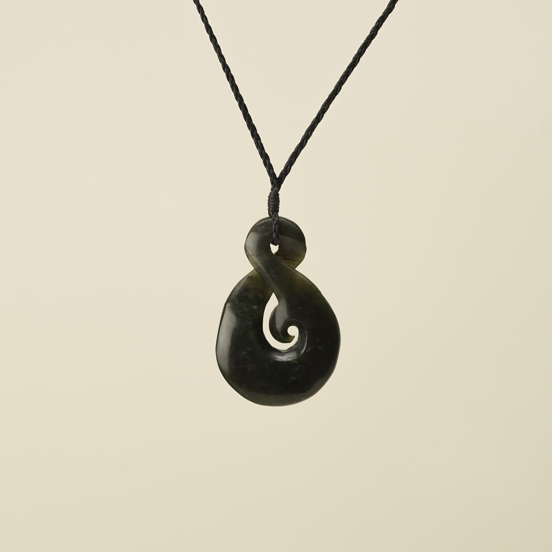 This pendant combines the koru and pikorua symbols, representing growth, renewal, and lasting connections. The koru signifies new beginnings and harmony, while the pikorua symbolises enduring bonds.