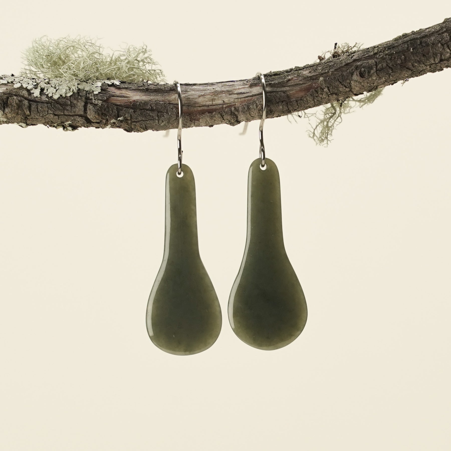 These handcrafted Paddle drop earrings made from Kawakawa greenstone with rich, grounded green hues. They are set in surgical grade steel with a polished finish that enhances the stone's natural depth and beauty. Presented in an eco-friendly box, these earrings make a thoughtful gift.