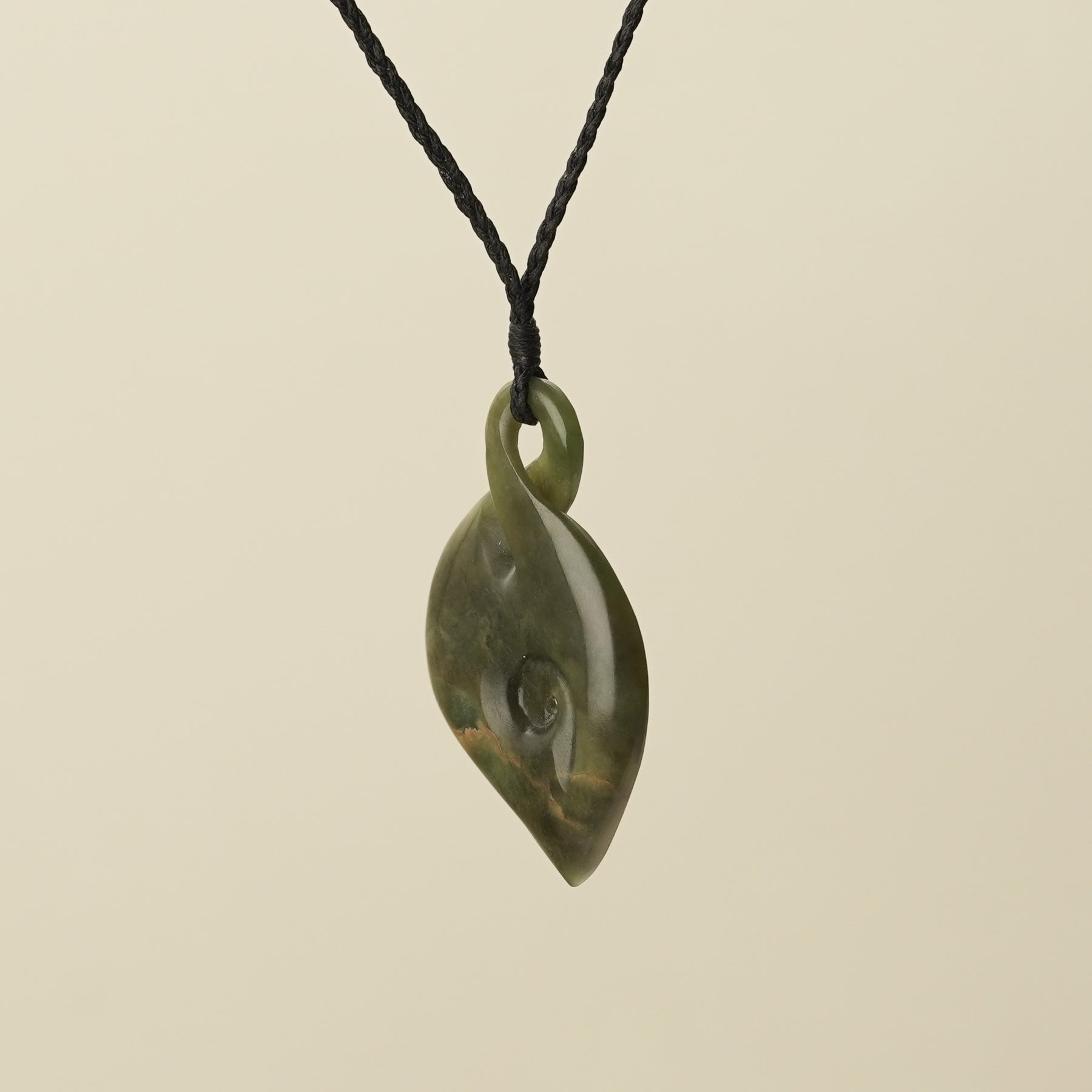 Carved from New Zealand Kahurangi Raukaraka greenstone, known for its light, calm green hue, this pendant combines the Pikorua and Koru designs in a beautifully intertwined form. The gentle tones of Kahurangi reflect clarity and purity, enhancing the stone's natural beauty. The twist and koru patterns symbolise deep connections, capturing the essence of friendship, whānau, new beginnings, and aroha. This piece comes with a handwoven black wax cord and is presented in an eco-friendly box, accompanied by meaning cards that detail its cultural significance and care instructions.