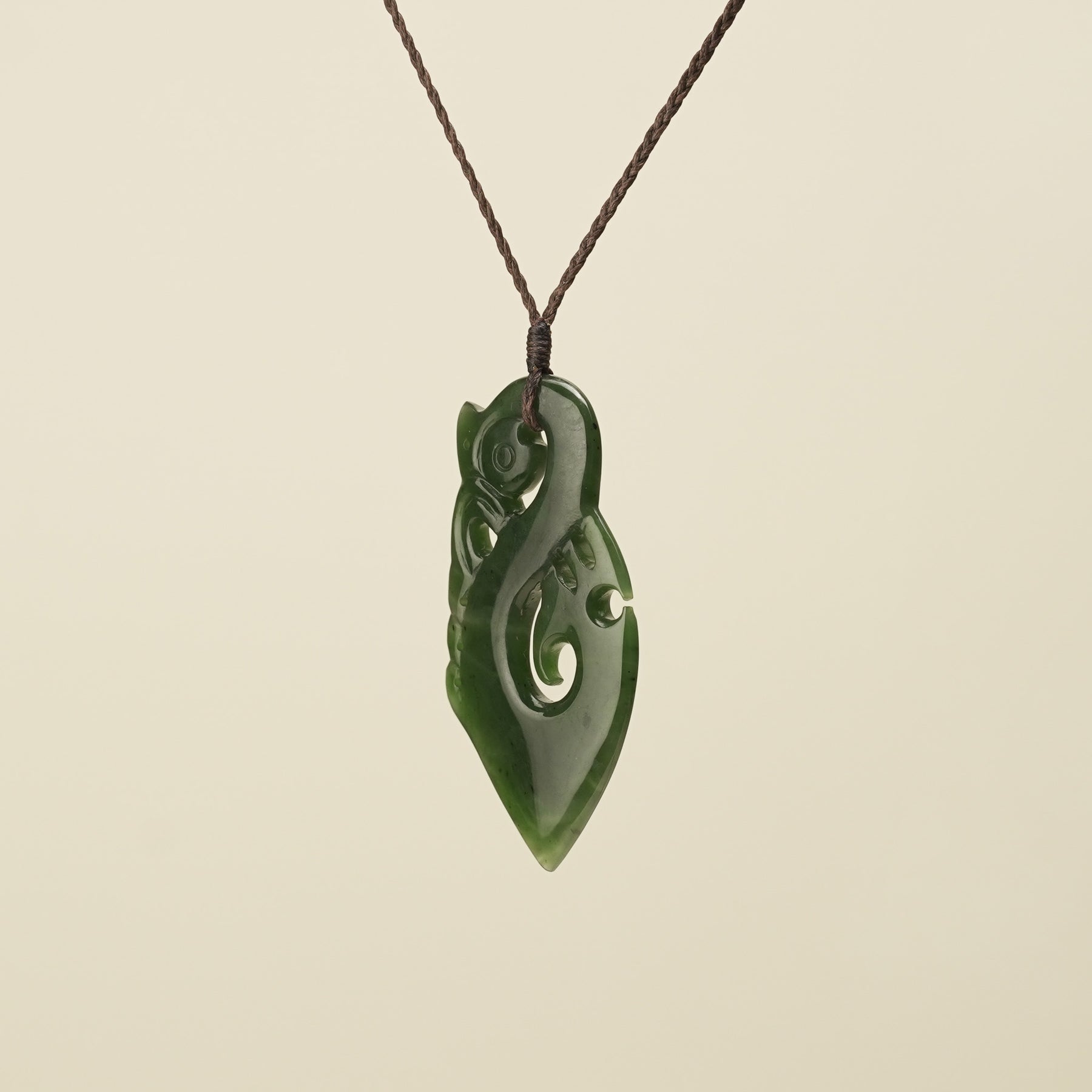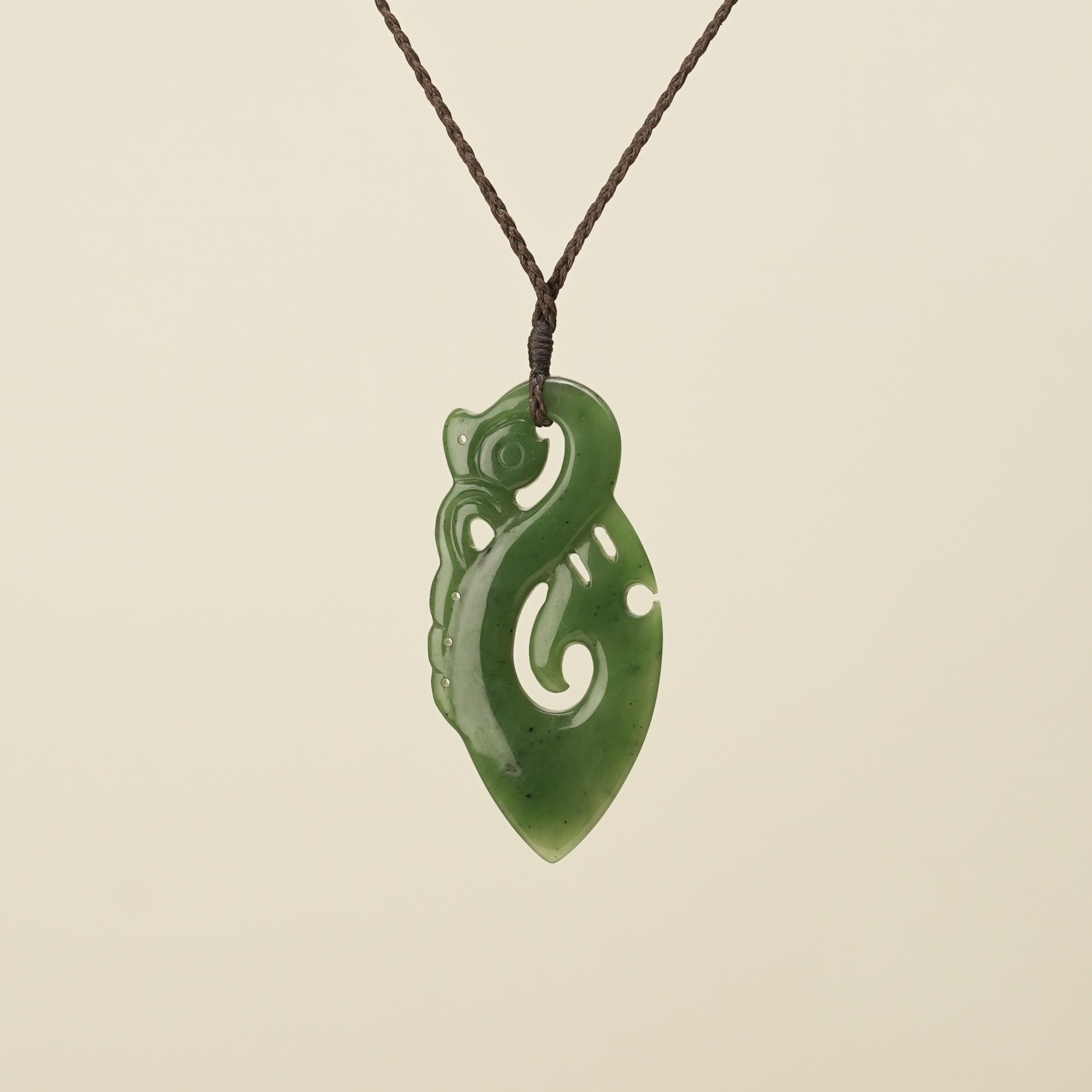 Manaia Kawakawa Greenstone Large Pendant Brown Binding