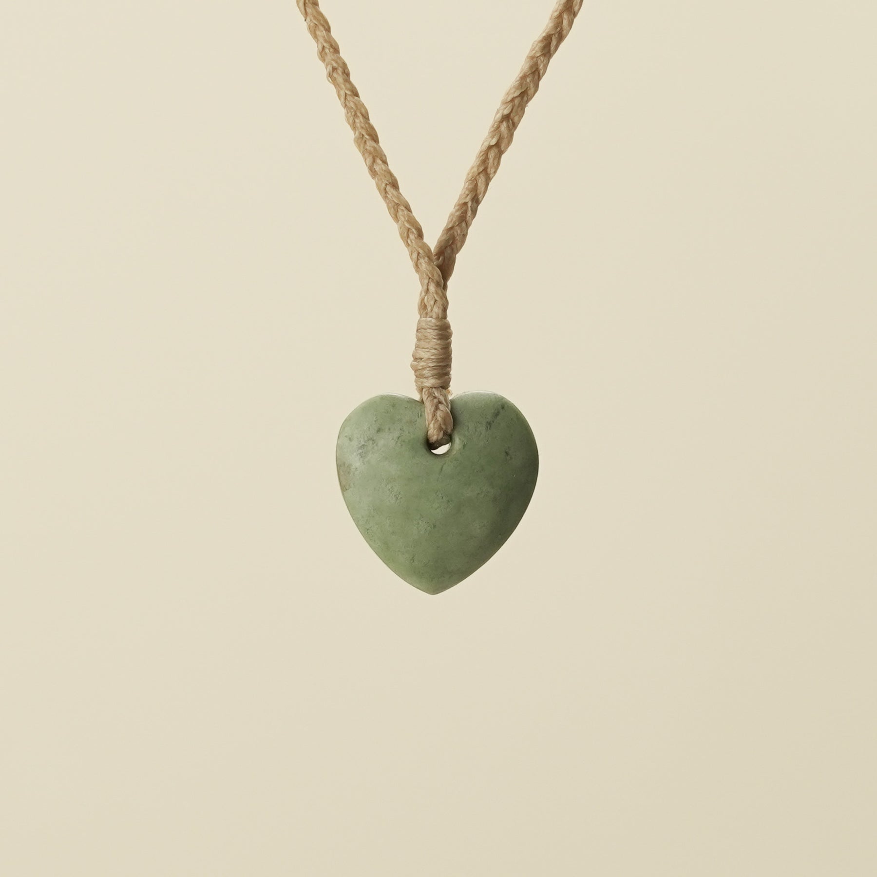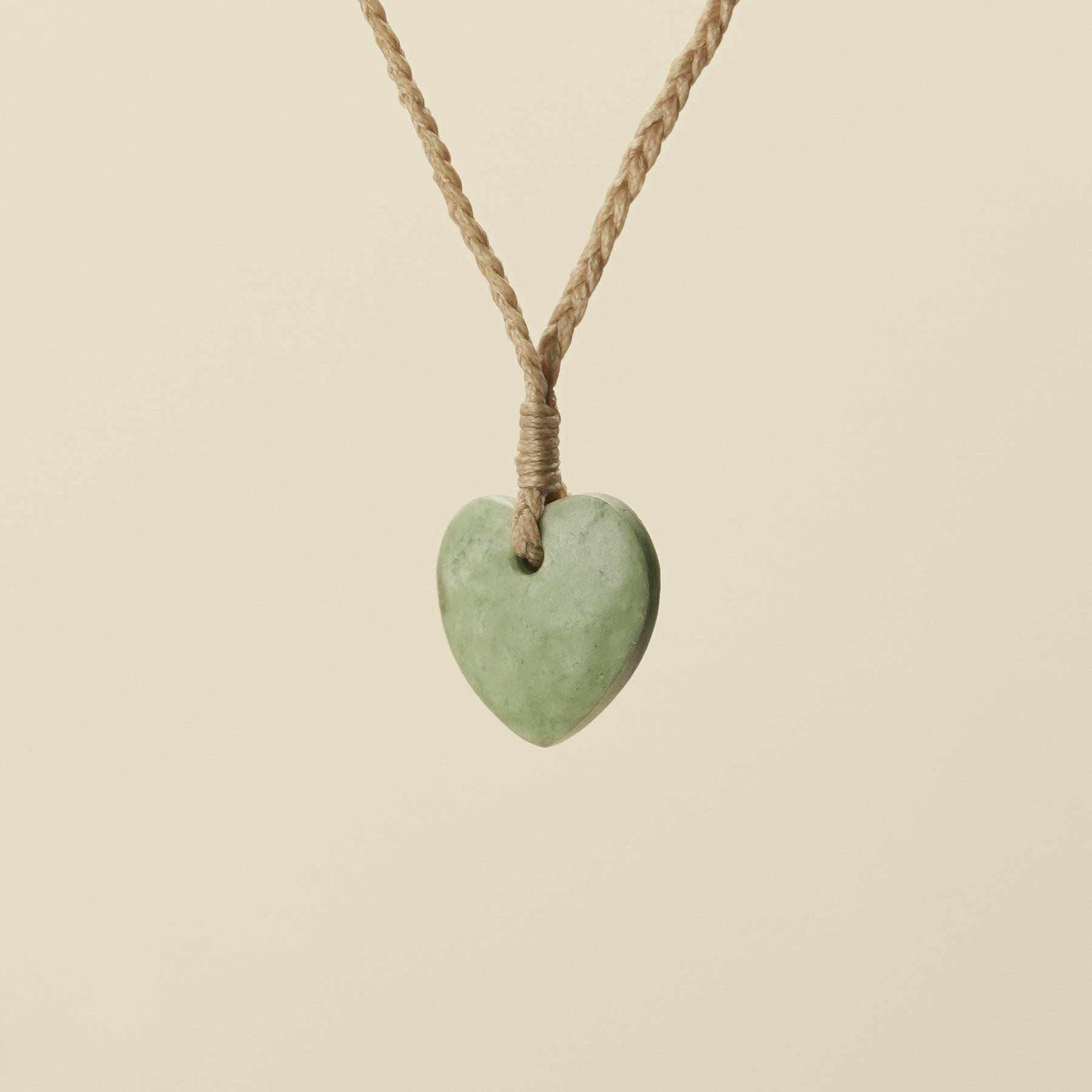 This extra small matte Pounamu Manawa (Heart) pendant, carved from Inanga Pounamu, showcases a unique blend of deep green and soft white hues with a natural marbled texture. It features handwoven adjustable tan cord. Symbolising aroha (love) and cherished connections, this pendant is thoughtfully presented in an eco-friendly box with a meaning and care card.