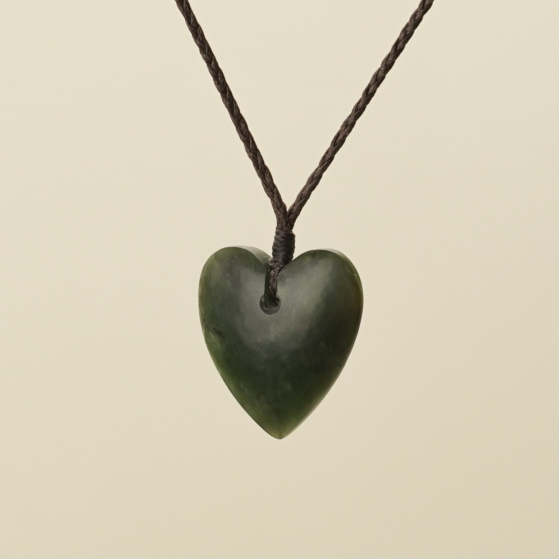 This small Pounamu Manawa (heart) pendant, beautifully carved from rich, earthy green Kawakawa Pounamu, symbolises unconditional aroha and cherished connections. Worn close to the heart, it serves as a constant reminder of someone special and the strength of your bonds. Featuring a brown adjustable cord, it's presented in an eco-friendly box with cards detailing its meaning and care.