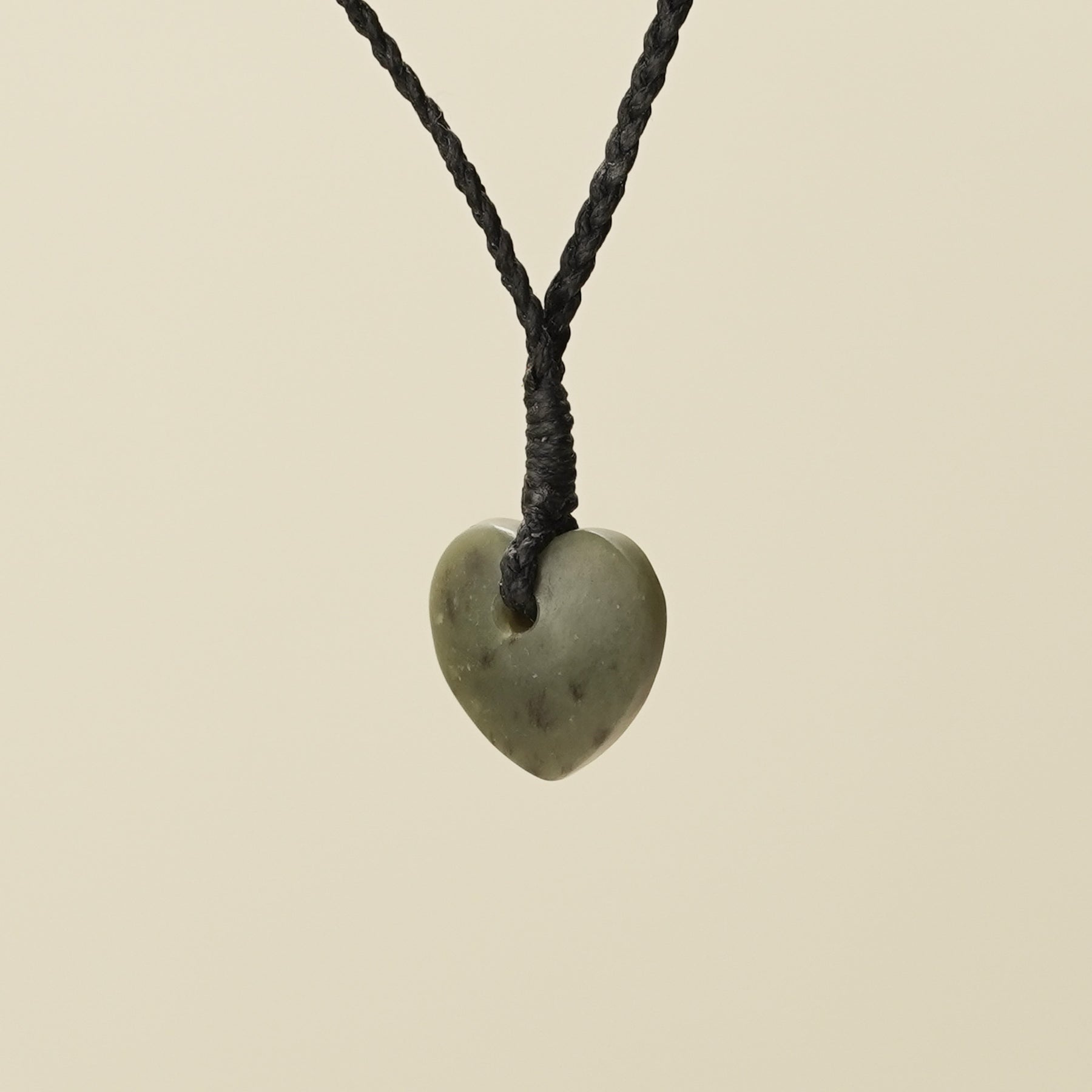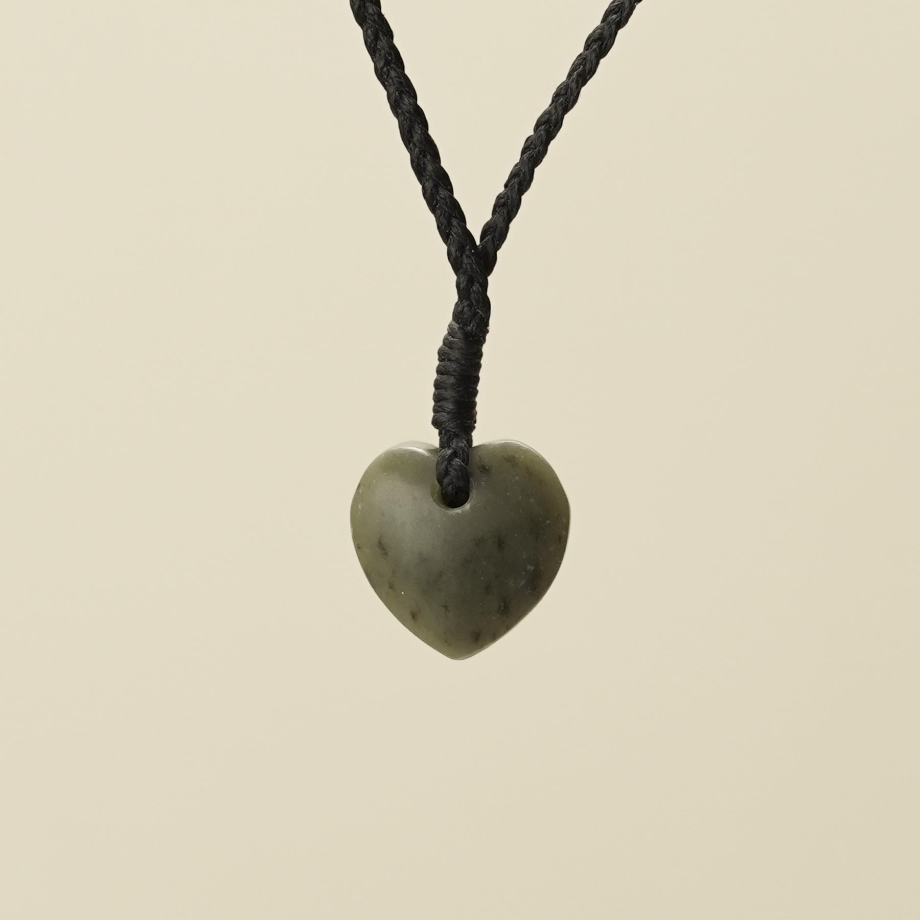 This one-off extra small Manawa (heart) pendant is carved from Kawakawa Pounamu, found in New Zealand's west coast. With a matte finish, it represents aroha and cherished connections, making it a meaningful taonga to wear close to your heart. Complimenting the flecks, it comes with an adjustable black hand-woven cord thoughtfully presented in an eco-friendly box, along with a card explaining its meaning and care instructions.