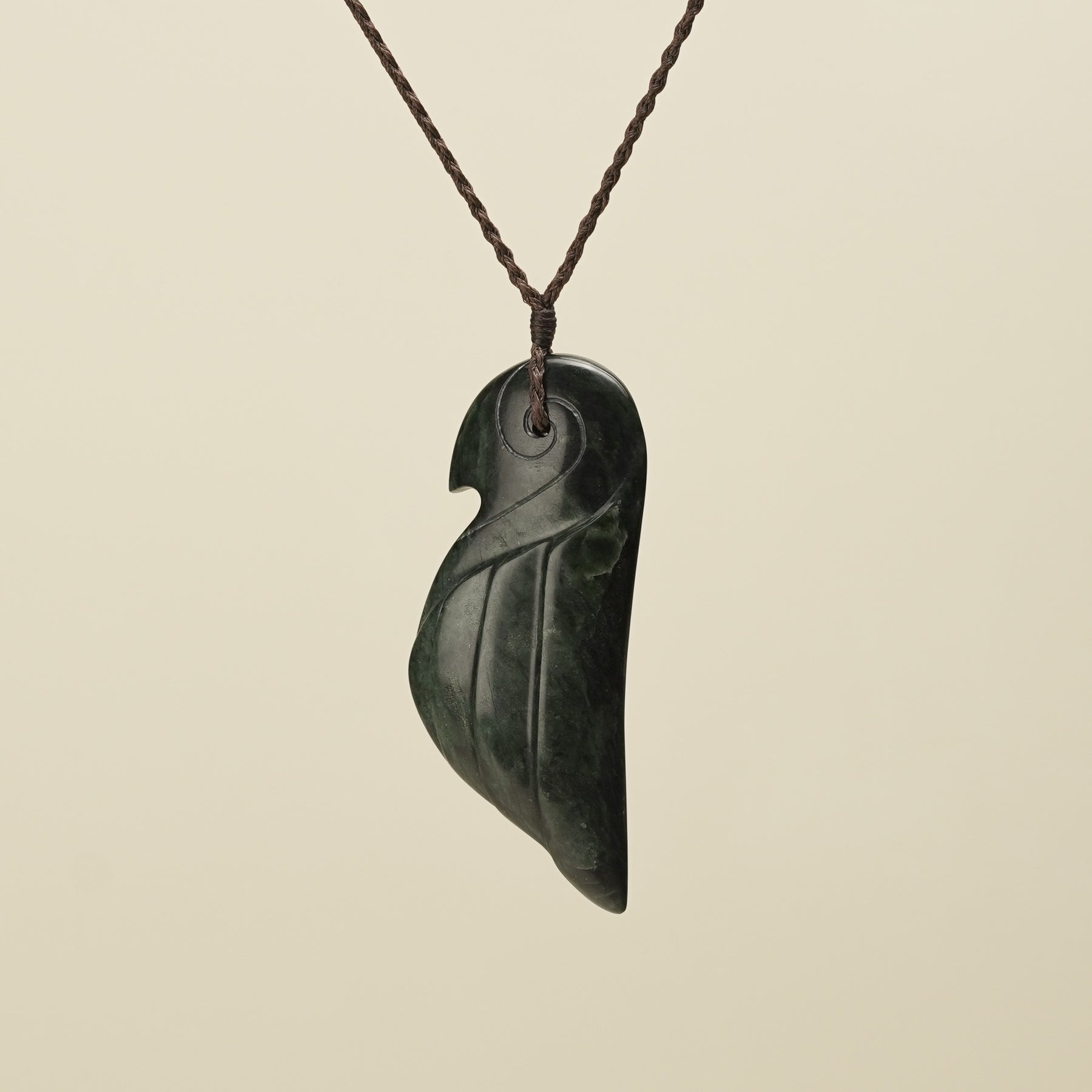 Manu Bird Large Pounamu Pendant, Brown Binding