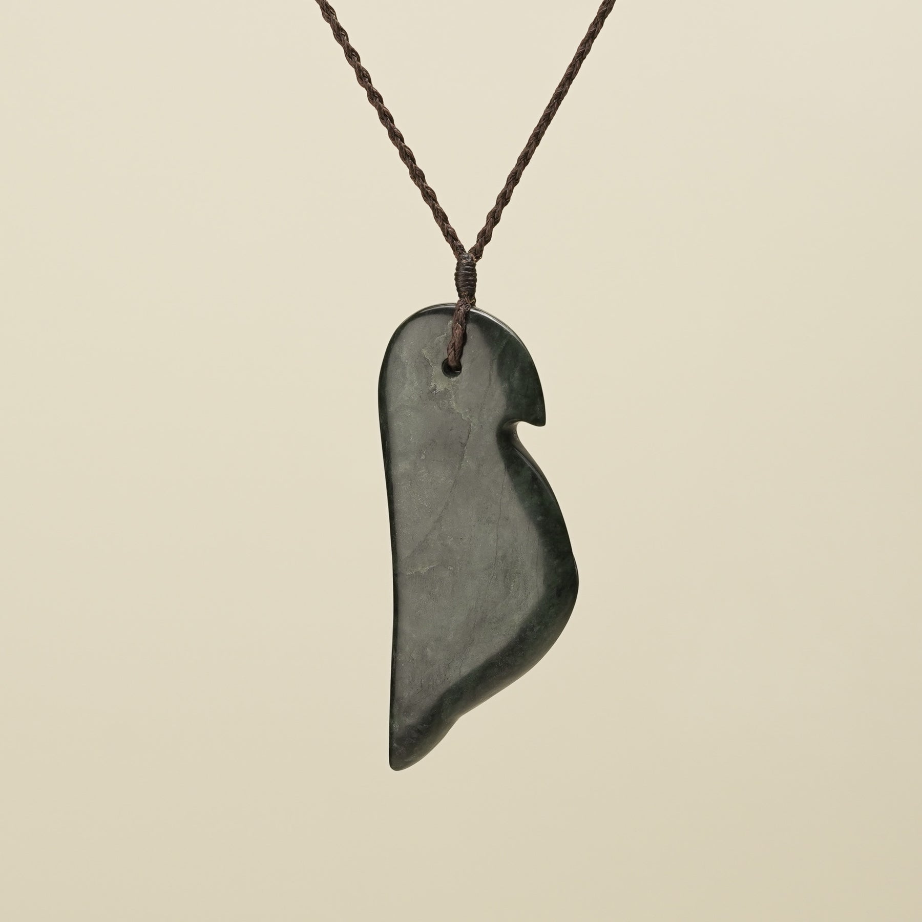 Carved from New Zealand pounamu, this unique Manu (bird) pendant embodies the spiritual significance of birds in te ao Māori. Seen as messengers between the physical and spiritual worlds, manu symbolise guidance, freedom, and wairua (spirit). They also represent matakite (foresight) and remind us of our connection to nature and ancestry. As a taonga, it holds its own mauri (life force), to be worn close to the heart. It comes with an adjustable, handwoven 4-plait brown cord.