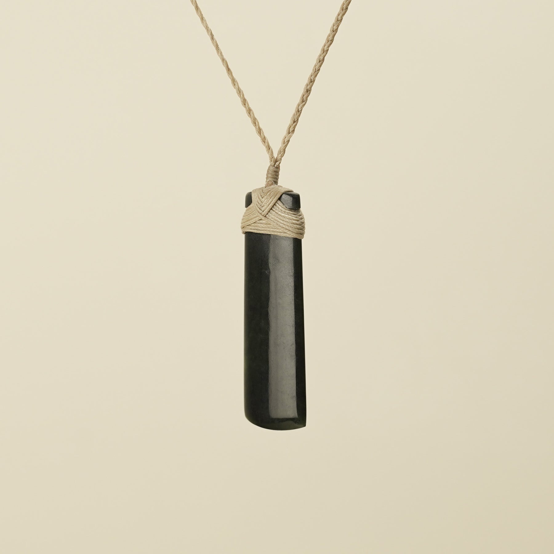 Carved in our Arrowtown workshop from rich Kawakawa pounamu, this one-off medium large Toki pendant symbolises strength and leadership. Its deep green-black tones are enhanced by its polished finish, beautifully highlighting the natural beauty of Aotearoa’s pounamu. Paired with an adjustable handwoven tan cord for a personalised fit, this remarkable Toki is elegantly presented in an eco-friendly box, accompanied by cards detailing its meaning and care—a truly cherished taonga.