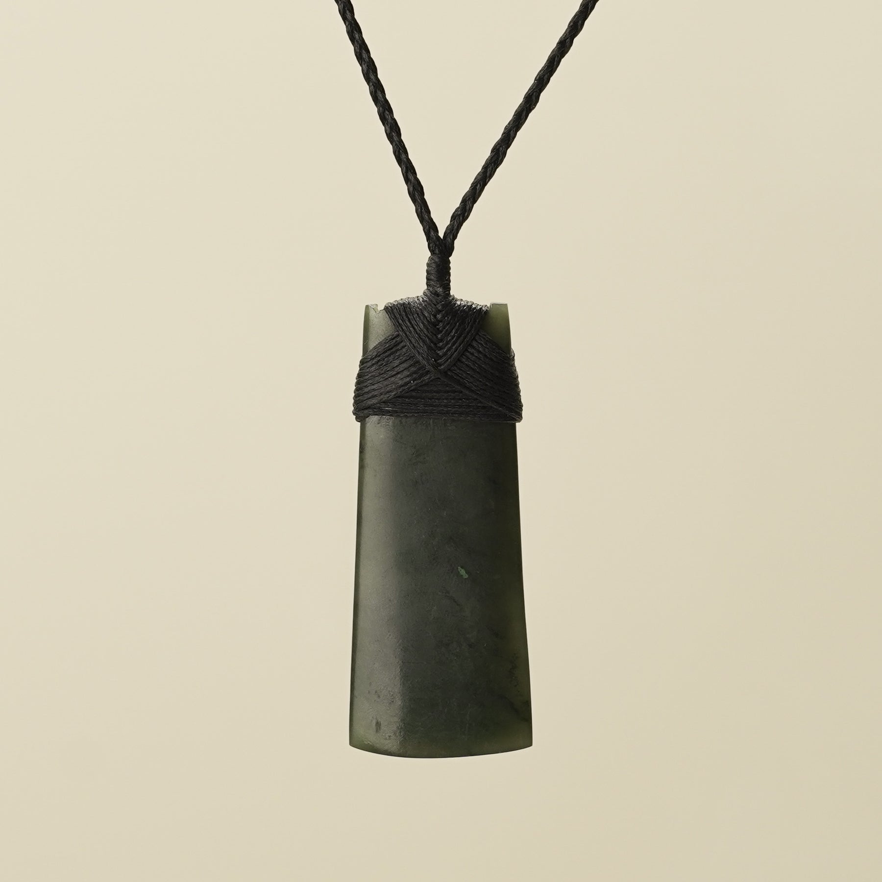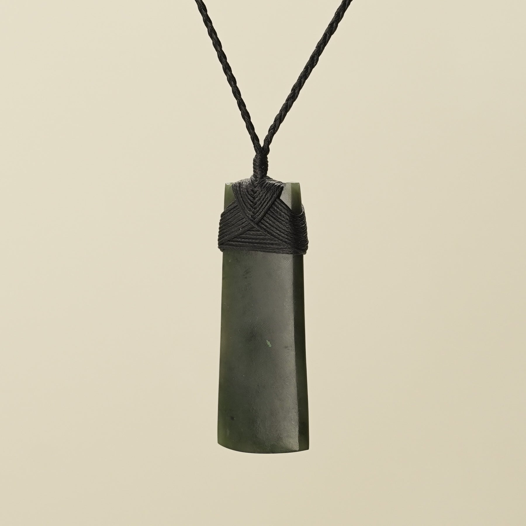 Carved from Kawakawa greenstone in our Arrowtown workshop, this Toki pendant symbolises strength, leadership, and resilience. Available in two shades of green—light and dark—you can choose the greenstone hue that resonates with you. It features an adjustable hand-woven black cord and comes packaged in an eco-friendly box with cards explaining its meaning and care. Traditionally worn by chiefs, the Toki carries the mana and spirit of its holders, representing power, wisdom, and courage through adversity.