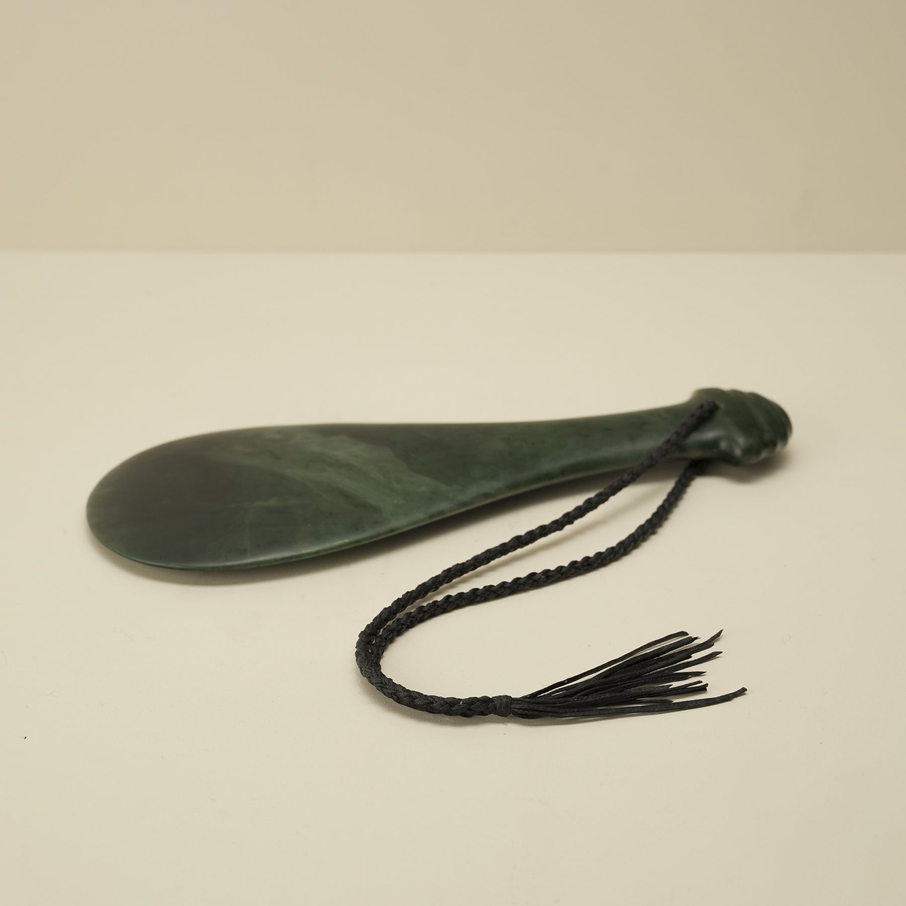Modelled after the traditional Māori mere once wielded by rangatira (chiefs), it symbolises courage, high status, and spiritual power.