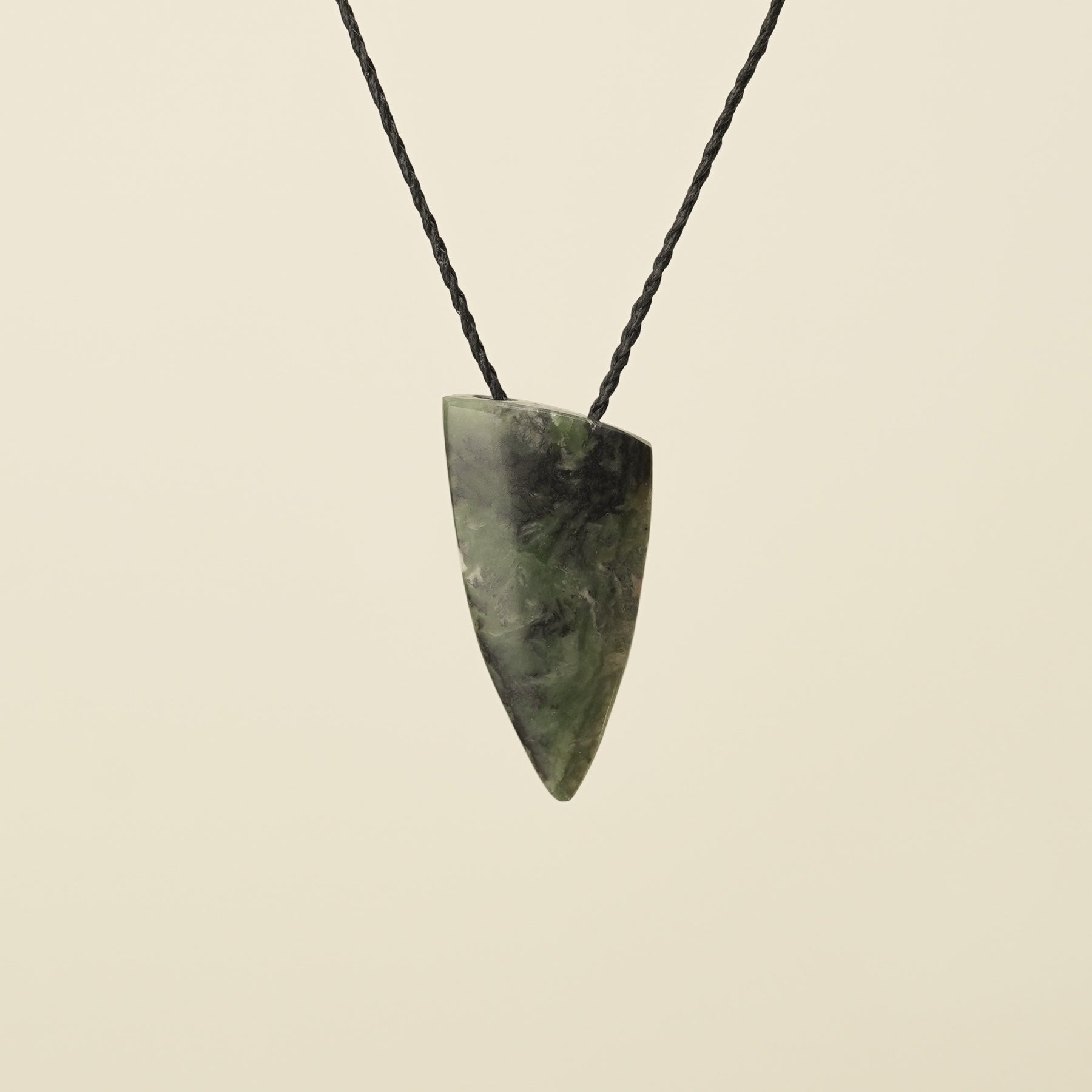 The Niho (tooth) design symbolises the guardianship and strength of whales and sharks in Māori culture. Carved from New Zealand's West Coast Hapopo Pounamu, showcases beautiful dark green tones & mossy streaks, adding unique character to each piece. Representing protection and a deep connection to the moana (ocean). Paired with a handwoven adjustable black cord, this pendant is thoughtfully presented in an eco-friendly gift box, complete with meaning and care cards - a meaningful taonga to cherish or share.