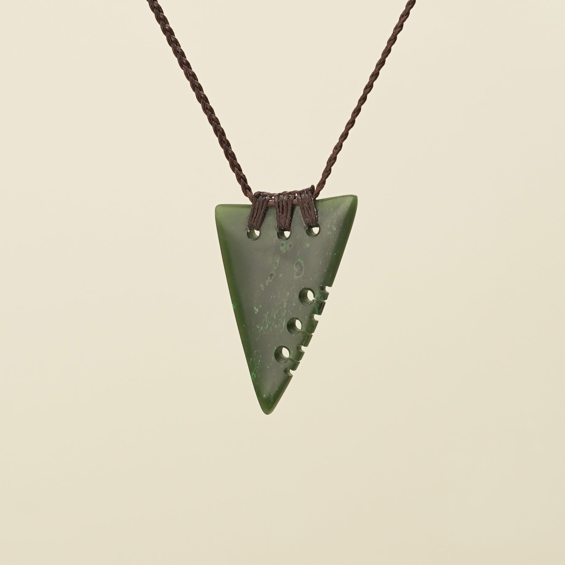 Notched Niho Tooth Kawakawa Greenstone Small Pendant Brown Binding