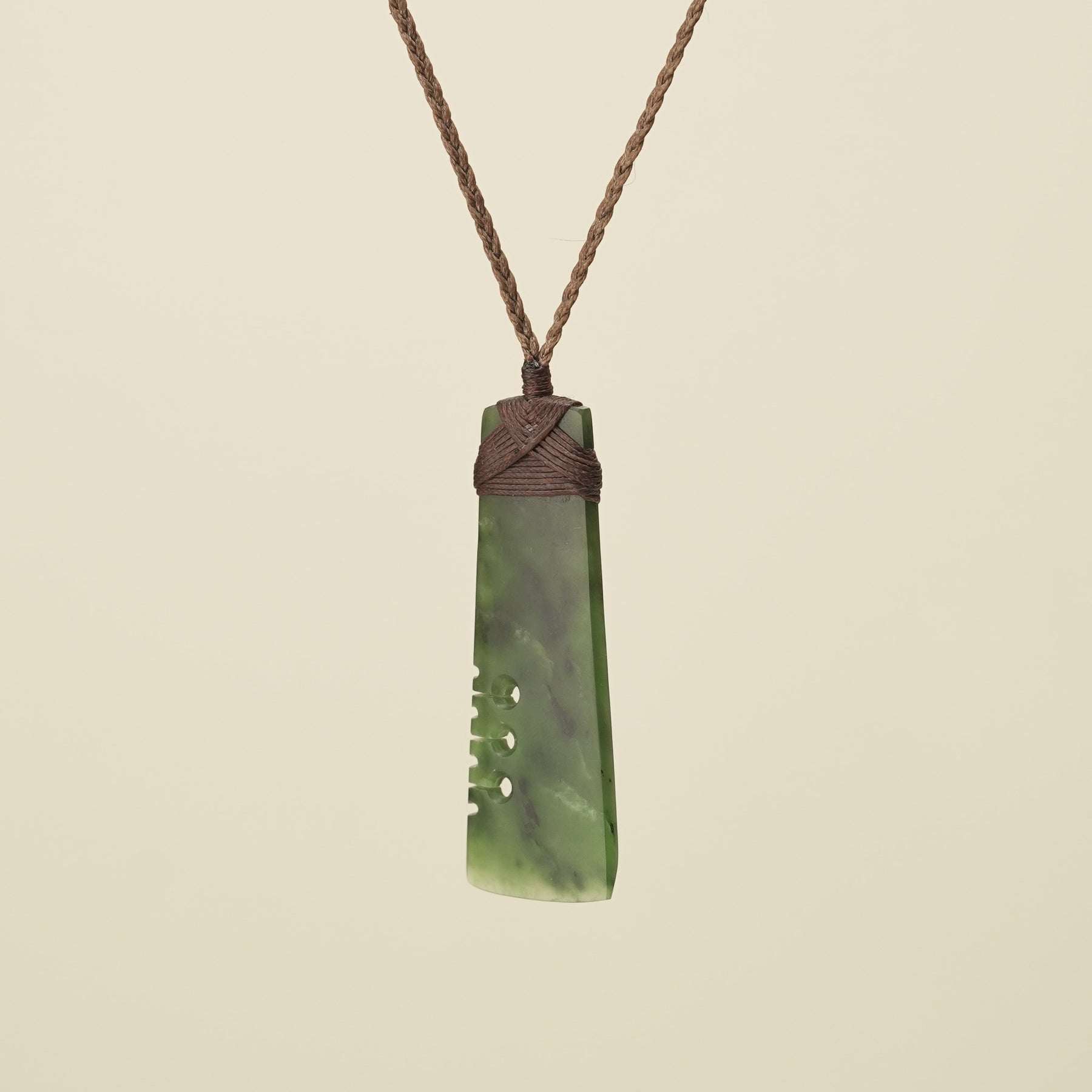 Notched Toki Kahurangi Medium Pounamu Pendant Brown Binding