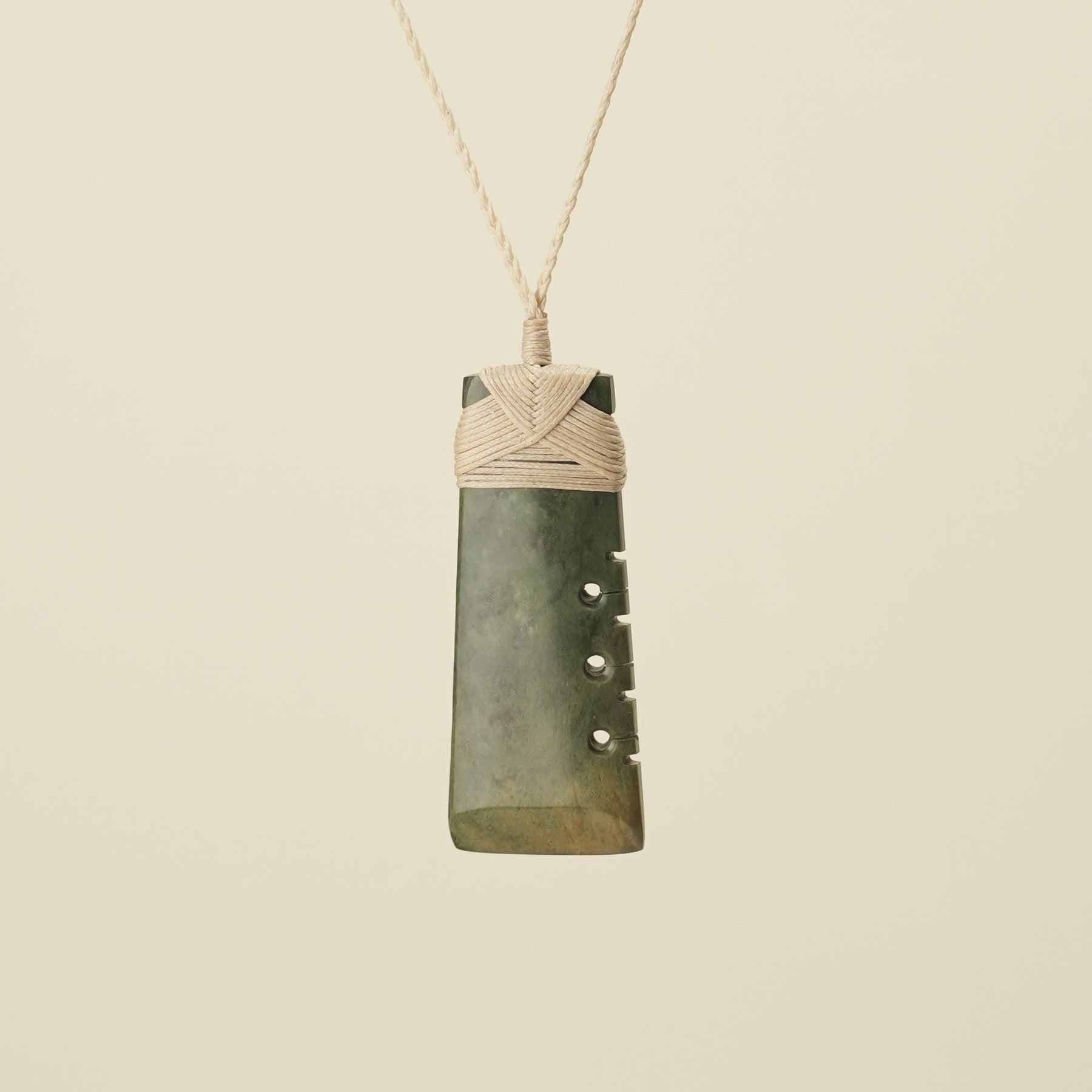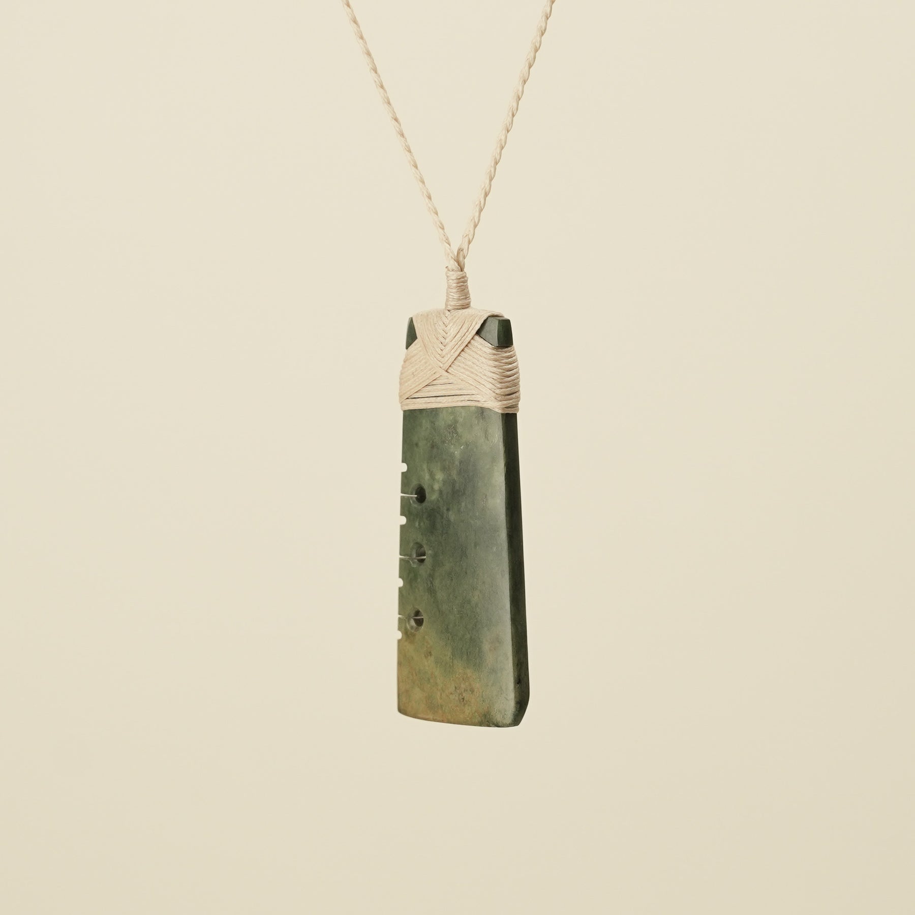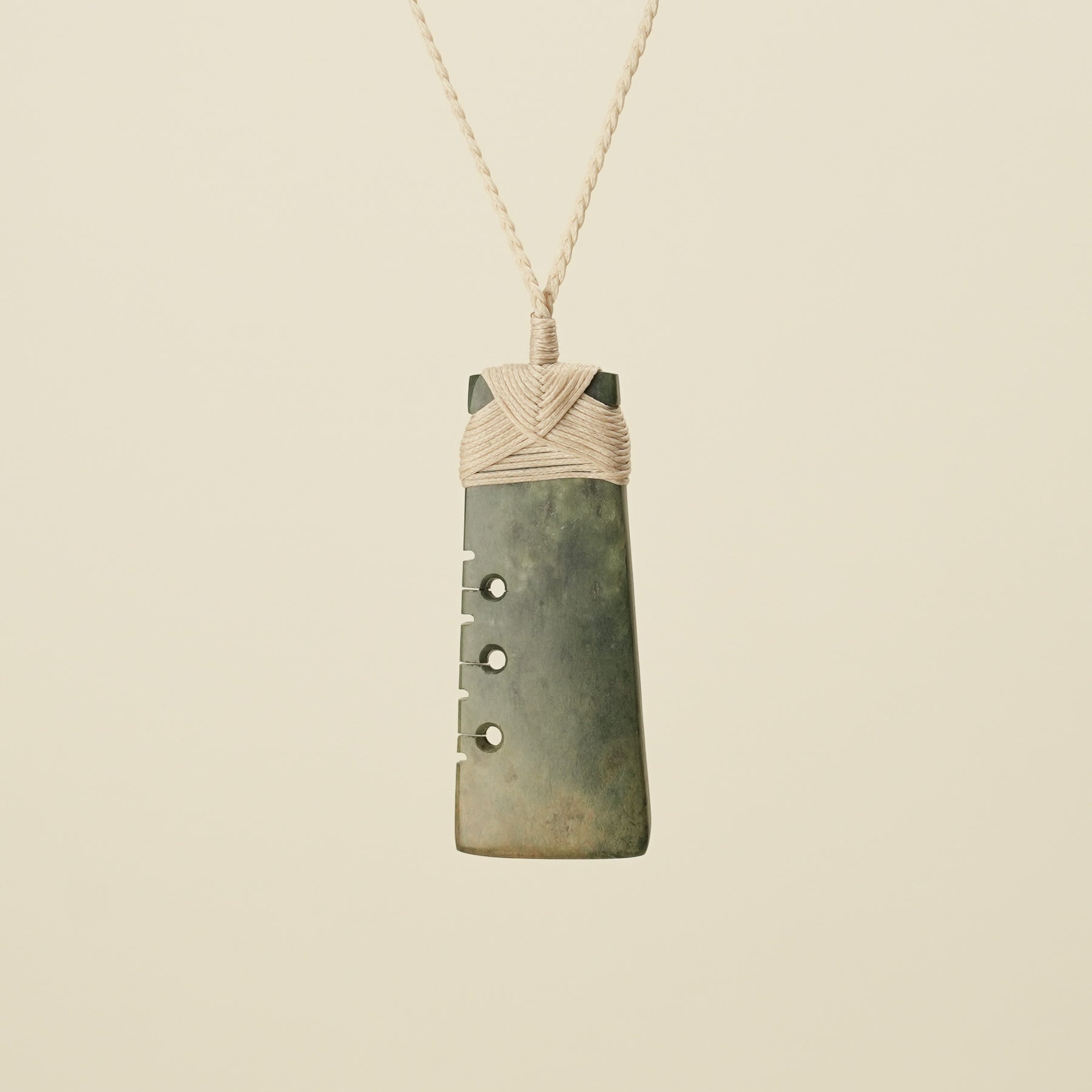 Notched Toki Raukaraka Matte Large Pounamu, Tan Binding