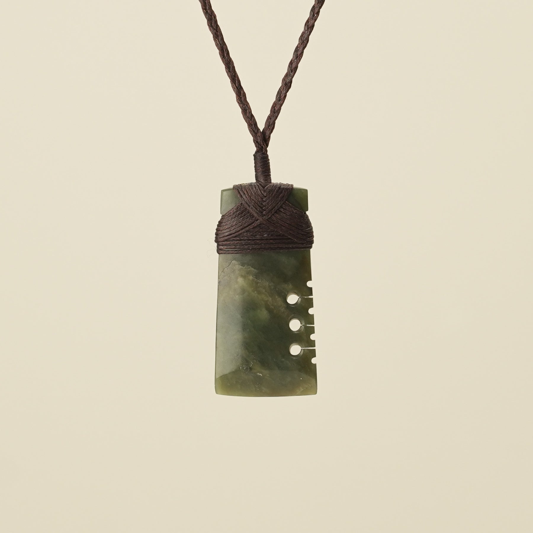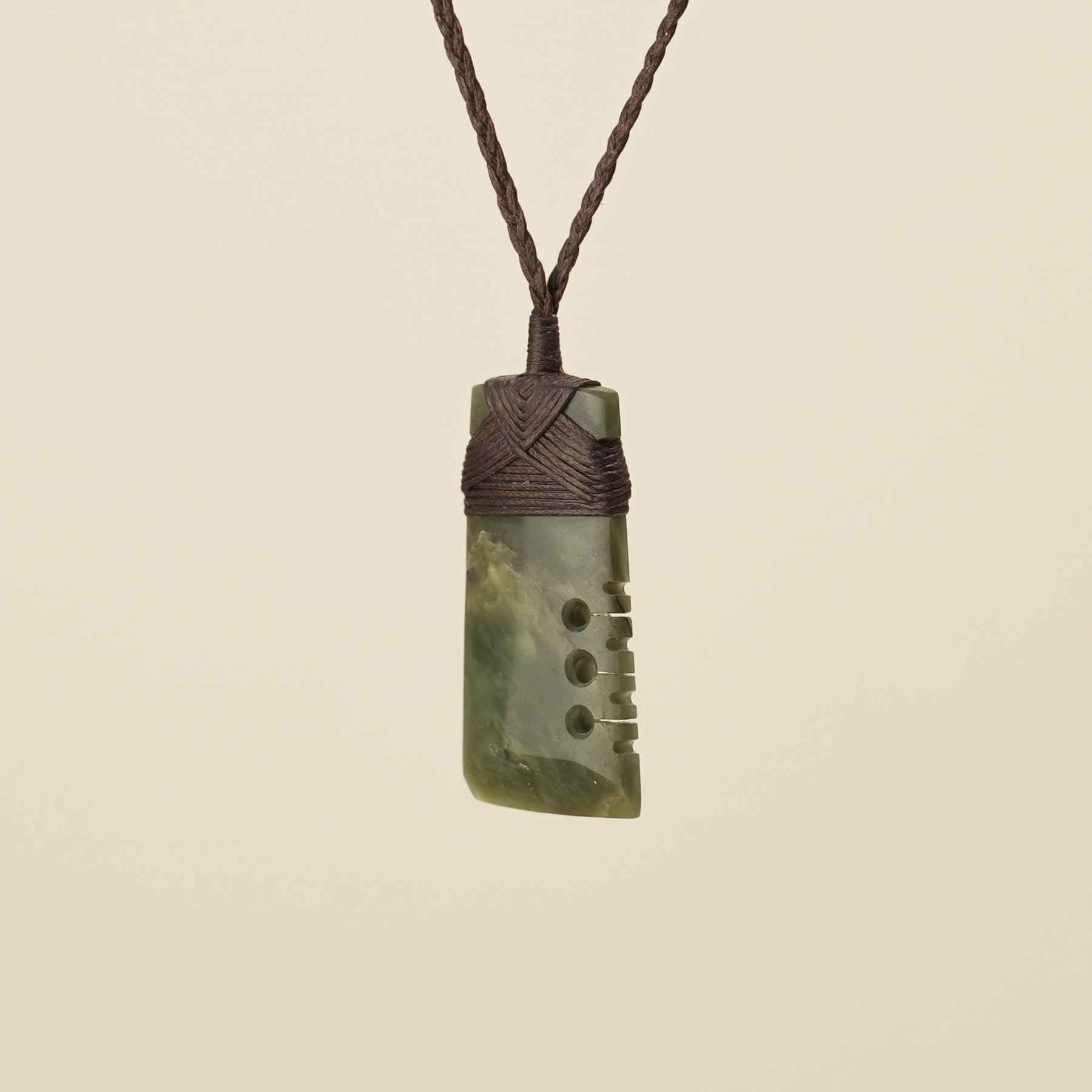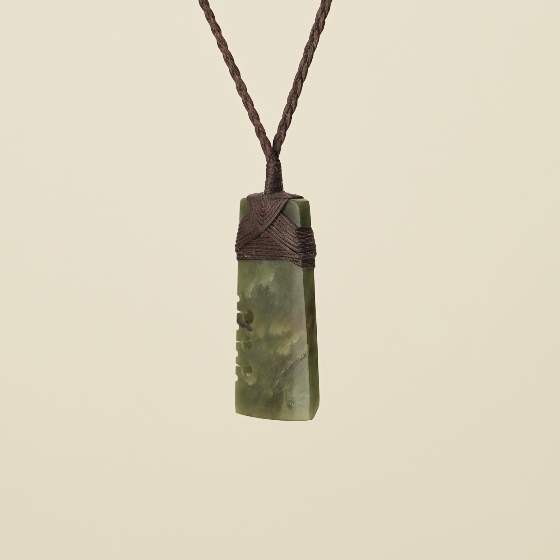 Symbolising strength, determination, and bravery, it features a distinctive matte finish with natural green specks. Paired with an adjustable brown handwoven cord for a personalised fit, the pendant is presented in an eco-friendly box with a Toki meaning and care card.