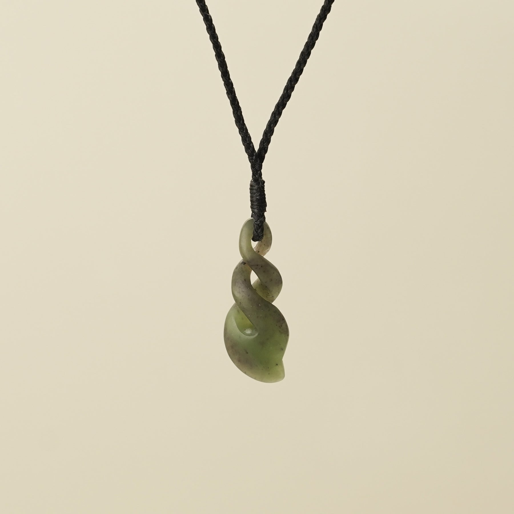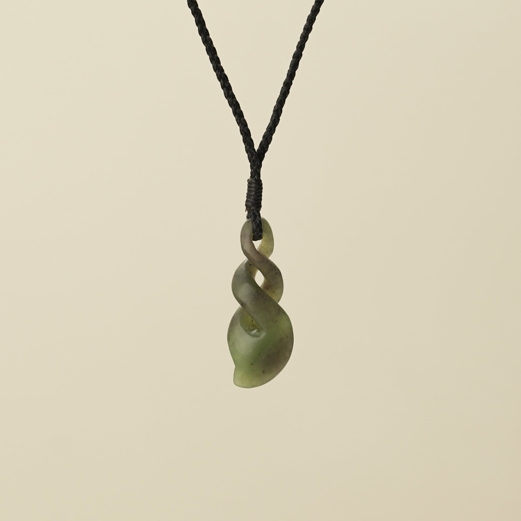 Pikorua Double Twist Small Pounamu Pendant, Black Binding