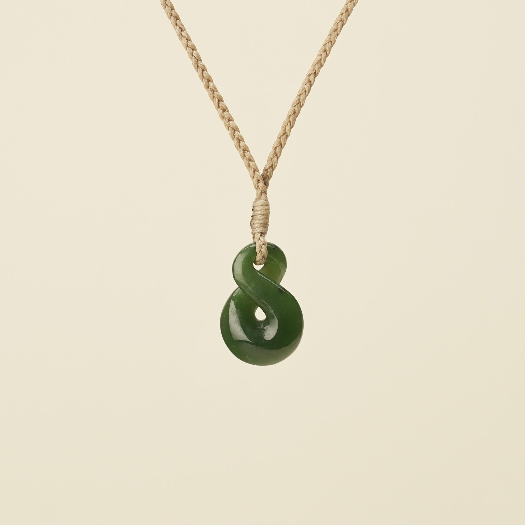 Carved from greenstone and polished to reveal its rich green hues, this small Pikorua (Single Twist) pendant features a classic design symbolising an eternal, unbreakable connection. The flowing twist represents two lives woven together in aroha, embodying a lasting bond. It includes a traditional handwoven, adjustable tan cord and is presented in an eco-friendly box with hand-drawn meaning and care cards, a cherished taonga, perfect for someone special.