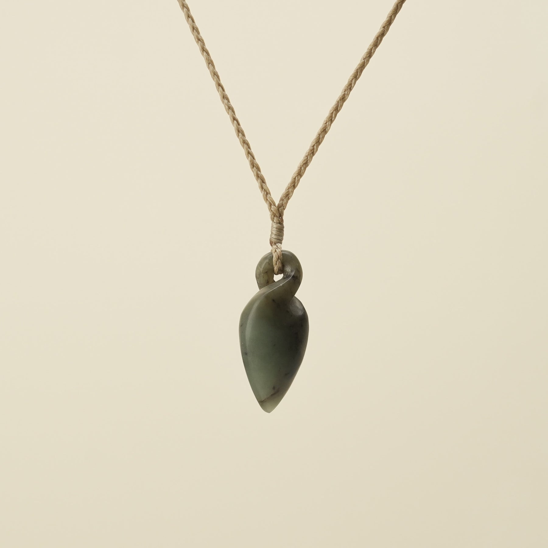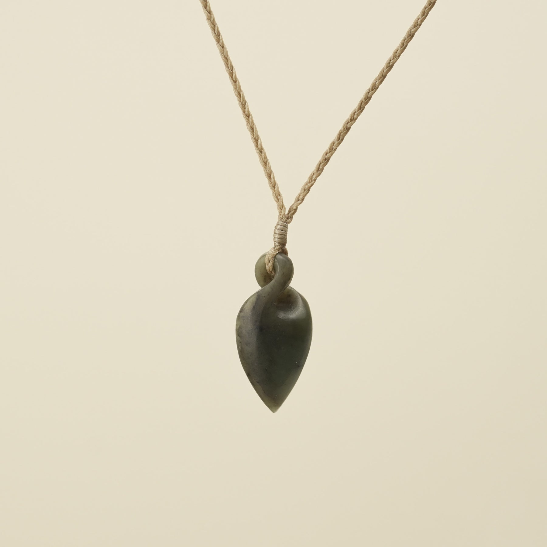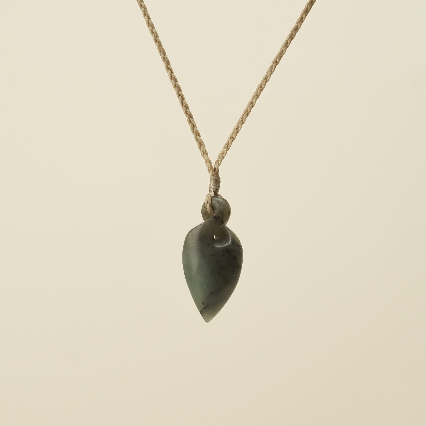 Pikorua Inanga Small Pounamu Pendant, Tan Binding