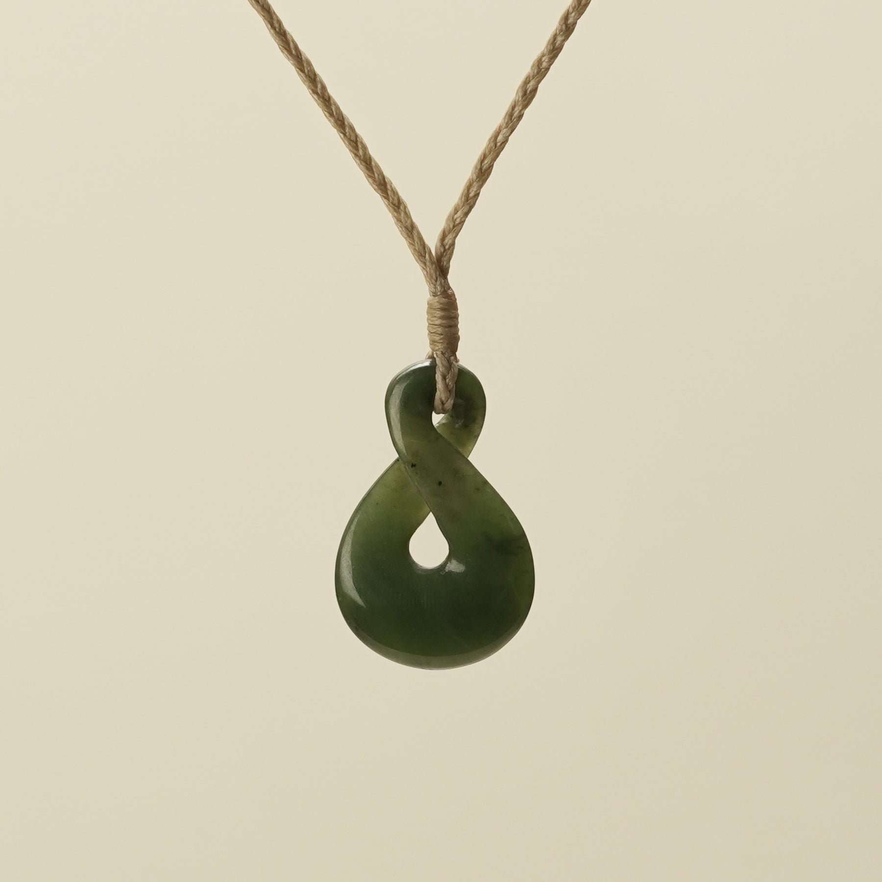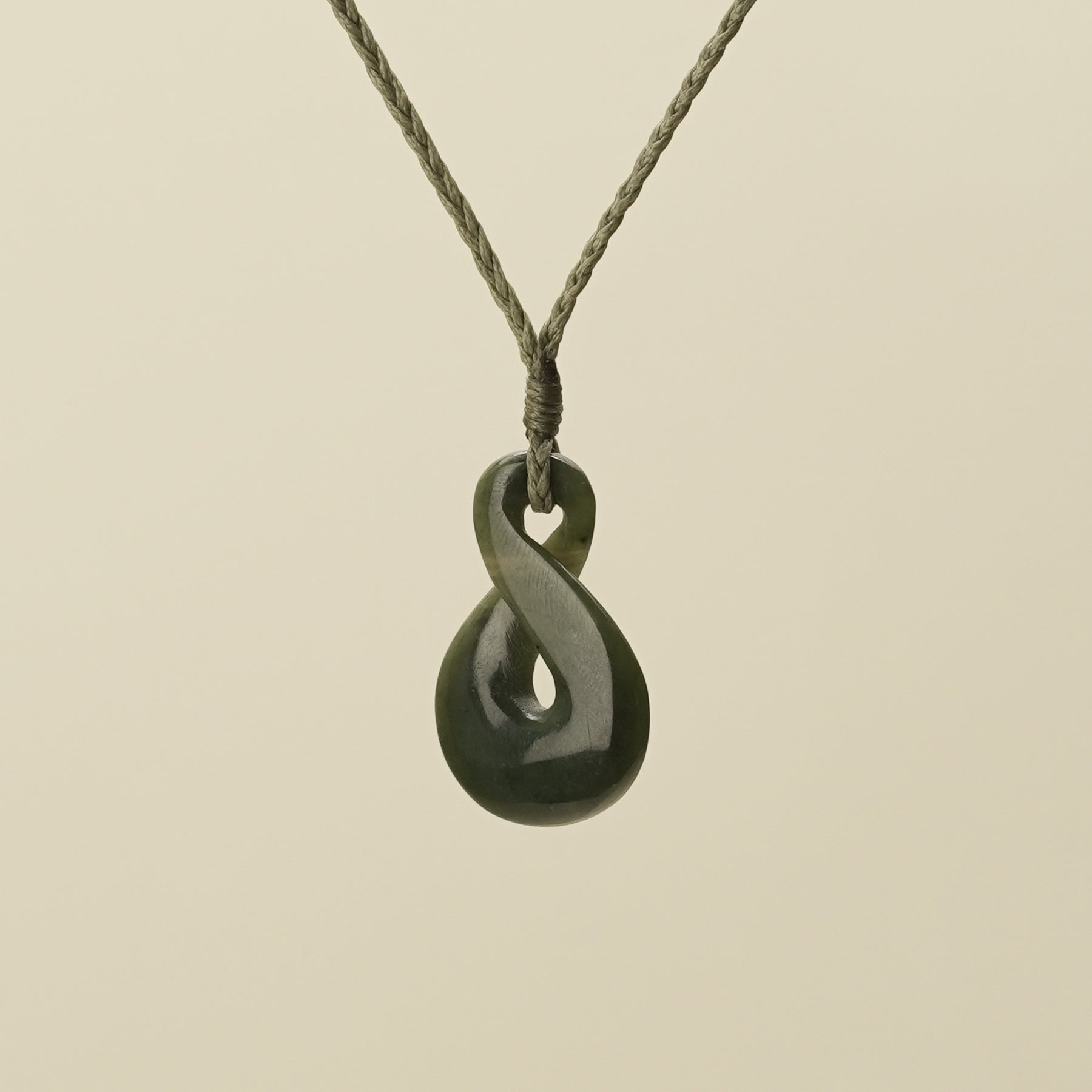 Carved from pounamu (greenstone), the Pikorua embodies the graceful, eternal flow of nature. Its smooth curves mirror life's gentle yet continuous ebb and flow, symbolising journeys that diverge yet remain forever connected.