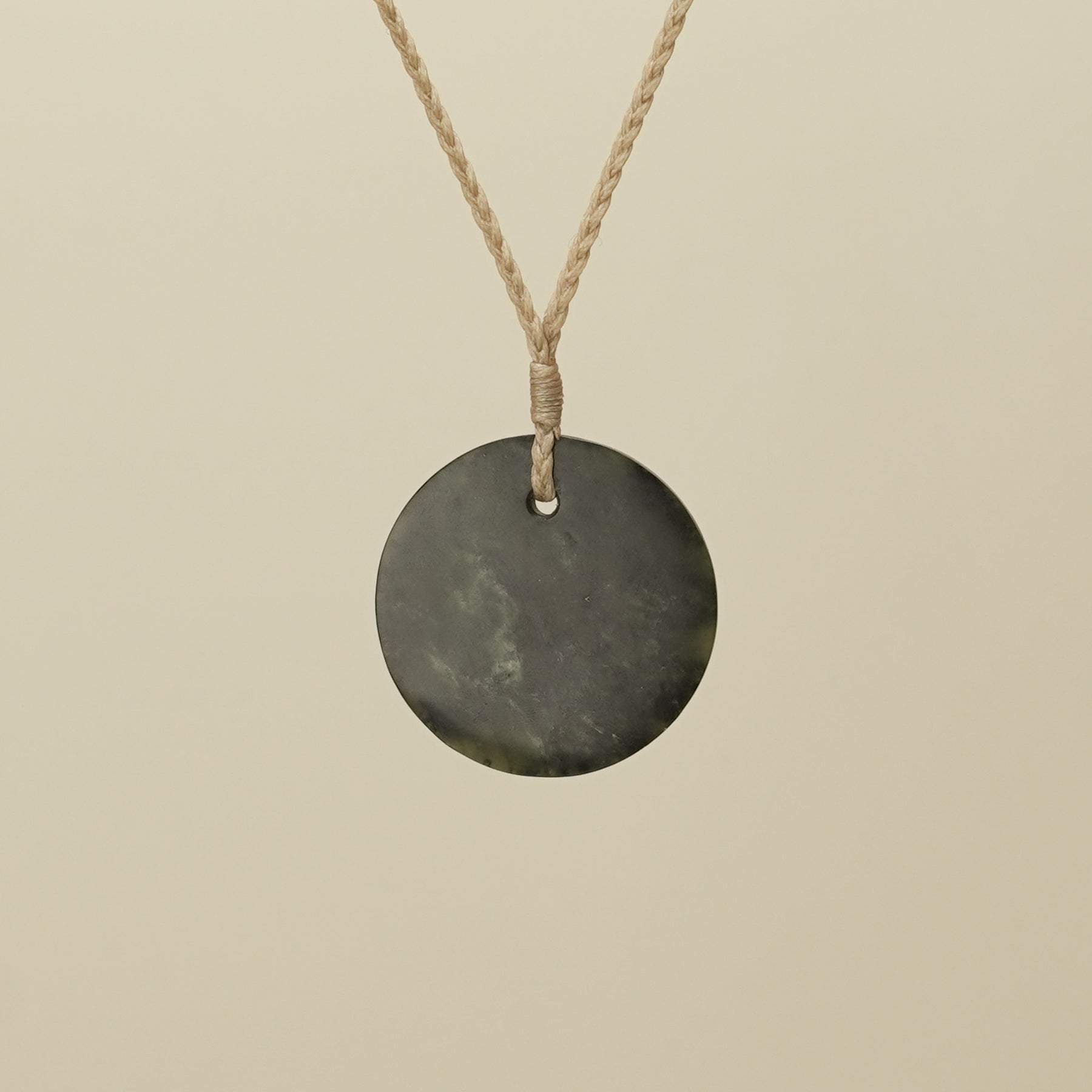 The medium Porowhita pendant embodies the circle of life, symbolising self-discovery and life's continuous cycles. Carved from New Zealand's Kawakawa Pounamu, showcases beautiful dark green tones with soft hues marbling throughout. The pendant features a tan handwoven adjustable cord and comes beautifully presented in an eco-friendly box, complete with meaning cards and care instructions. A meaningful taonga, it makes a thoughtful gift to celebrate shared journeys and connections.